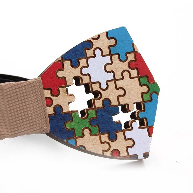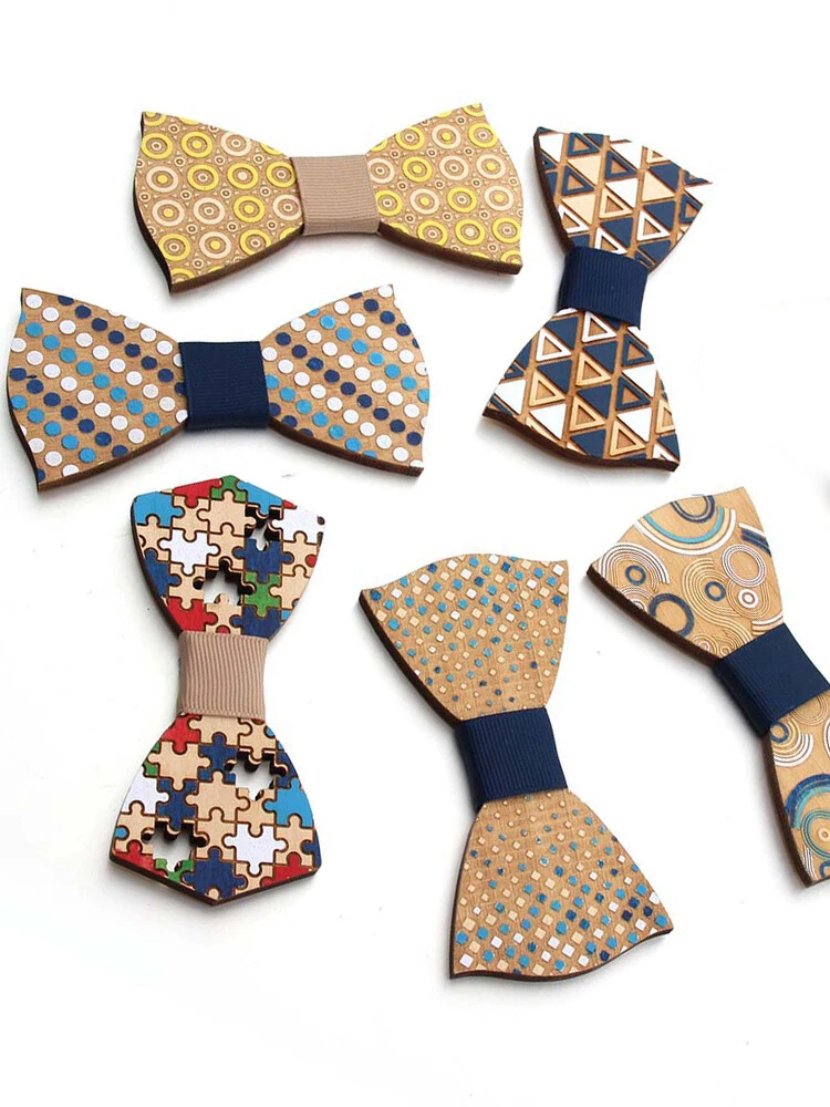 Handmade Adjustable Wooden Bowtie Necklace with Engraved Natural Wood Bowknot