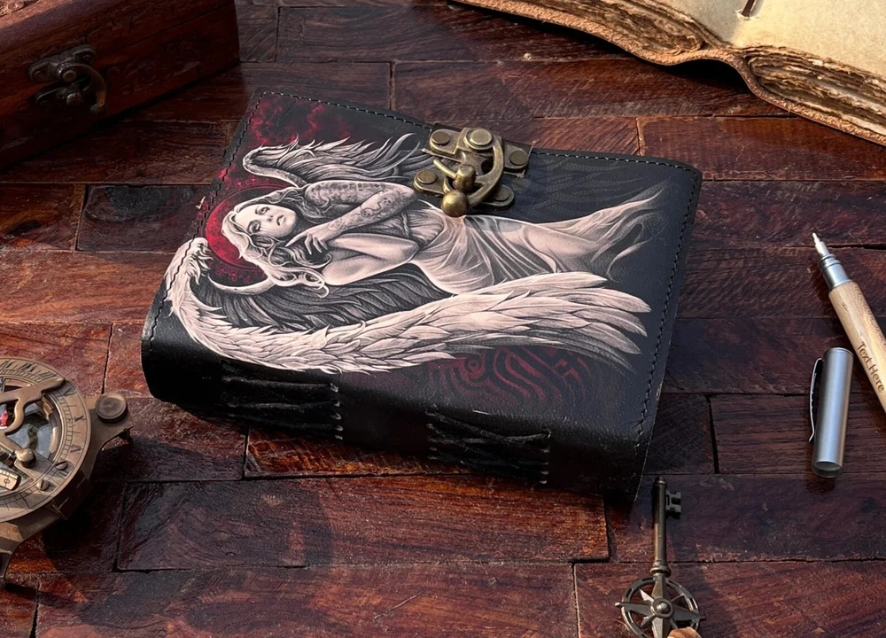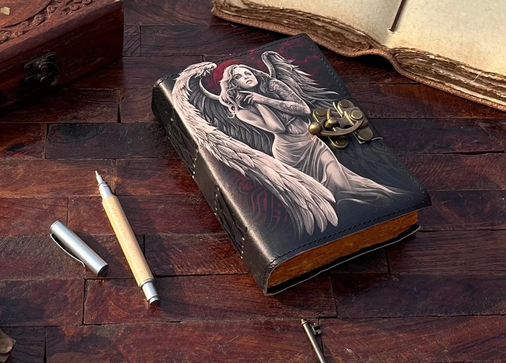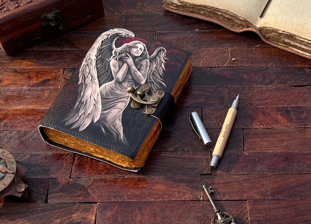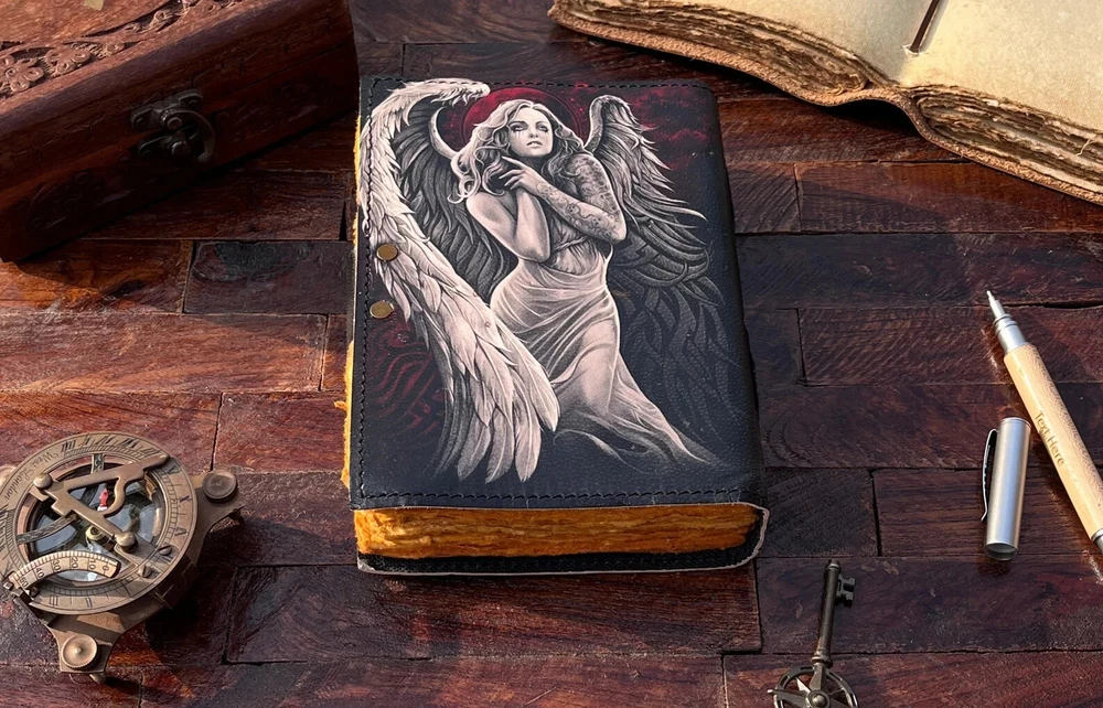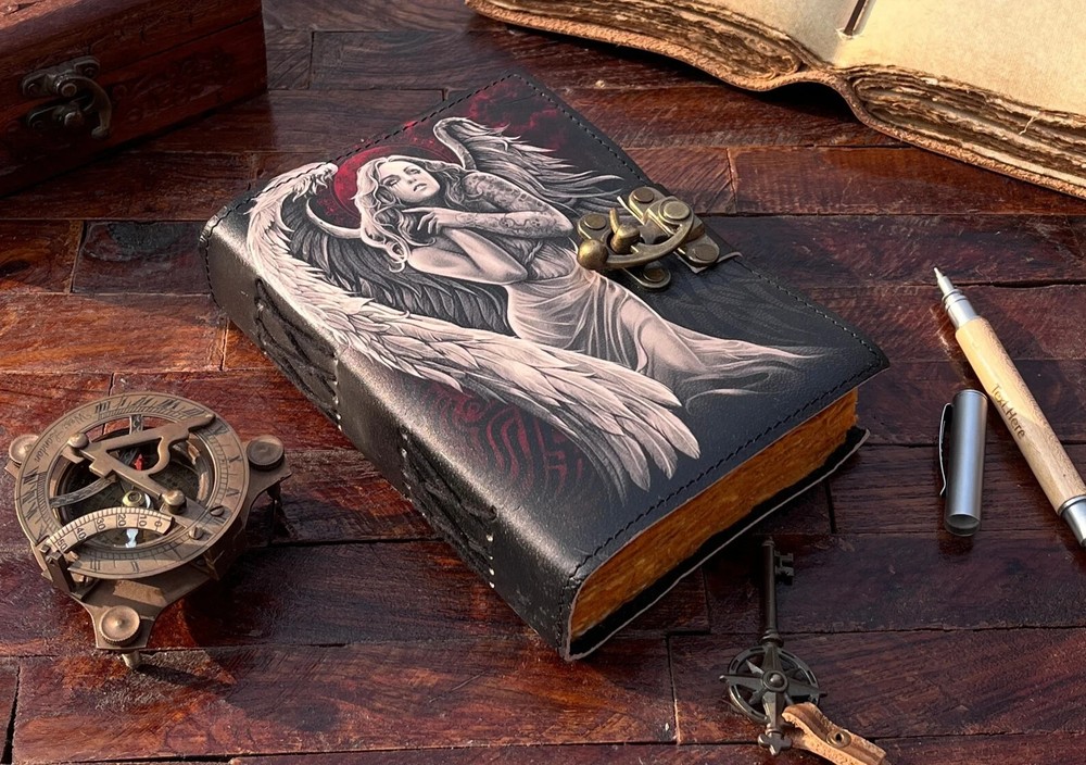 Handmade Angel Leather Notebook - Grimoire Journal for Writing