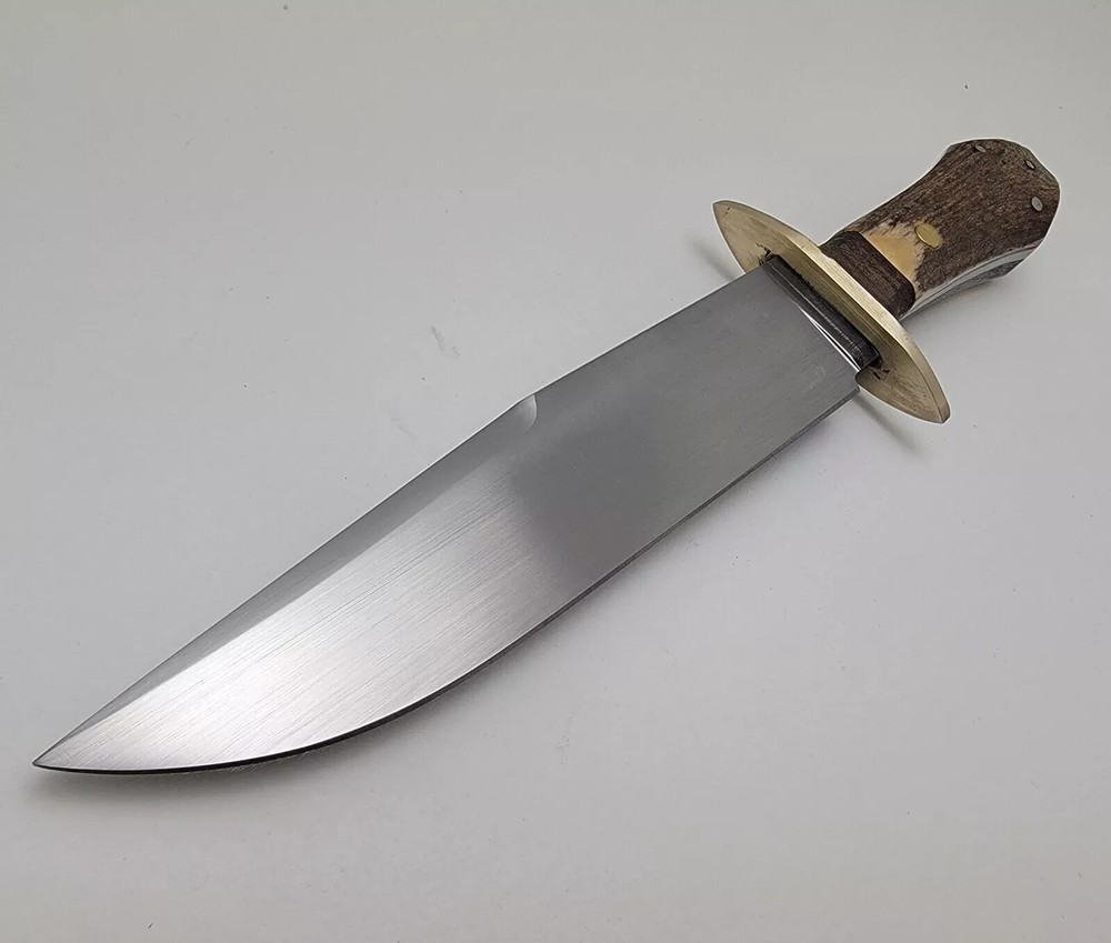 Custom D2 Steel Bowie Hunting Knife with Stacked Leather Handle for Survival