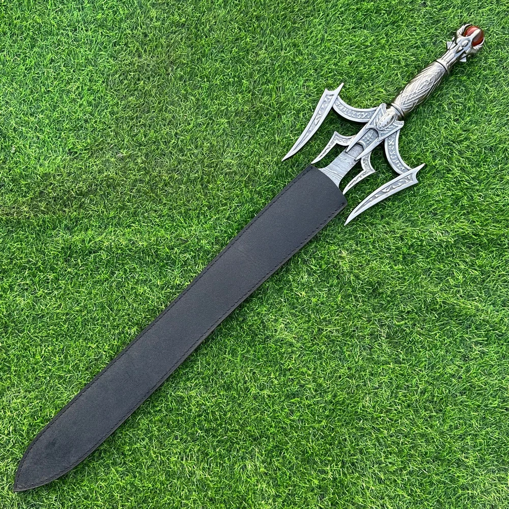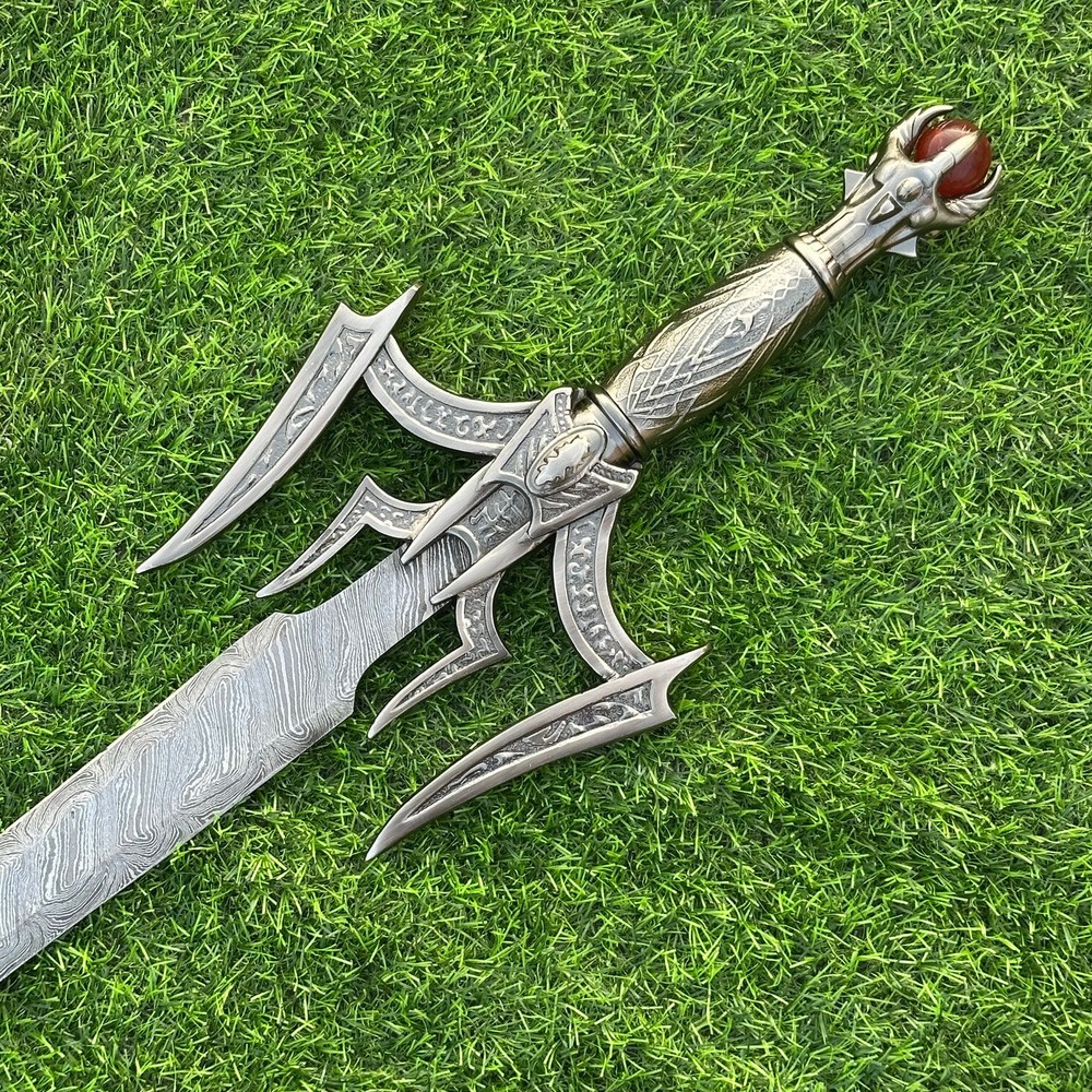 EXCLUSIVE HANDCRAFTED Damascus Steel Blade: A Legendary Sword for the Modern Warrior, Medieval Sword Swords Battle Ready, Hand Forged Sword, Damascus Sword, Long Sword, Viking Sword, Sword, Wedding Gift, With sheath Product Details: Overall Length: Approximately 34.0"inches (Approx.) Blade Material: Genuine Damascus Steel Blade Hardness: 54-58 HRC Handle Material: Pewter Size Verification: To help you easily determine the size, we've included images with a scale for precise dimension reference. Thank you for your understanding. We appreciate your consideration. Included Accessories: Sheath -excellent husband wife gift -Wedding gift -Father's Day gift -Mother's Day gift -Birthday Gift -Groomsmen gift -Christmas gift -Luxury Gifts For Men -Anniversary gift for husband -Thanksgiving Gift For International Customers: We kindly advise our international customers to familiarize themselves with their country's regulations prior to making a purchase. If customs in your region request customs duties, please be prepared to cover these costs. Regrettably, we cannot assume responsibility, nor issue refunds in such cases. Our Damascus Steel Creation Process: At our workshop, we take immense pride in crafting authentic Damascus steel knives that surpass mere acid etching. Here's an overview of our Damascus steel-making process: 1. Material Selection: We meticulously combine 1095HC and 15N20 nickel carbon steel for our blades. 2. Layering: The chosen steels undergo repeated heating and folding to achieve a remarkable 384 layers. 3. Acid Burn: Following the layering process, the blade is treated with acid, revealing the brilliant nickel shine and a dark gray hue in the high carbon steel, thereby showcasing the stunning Damascus patterns. 4. Blade Finishing: Concurrently, we expertly sharpen the blade's edge, transforming the acid-treated edge into a striking satin finish. Our unwavering commitment to preserving the authenticity and craftsmanship of Damascus steel ensures that each knife in our collection showcases intricate layers and delivers exceptional performance. AGE LIMITATION: Please note that we exclusively sell knives to individuals who are 18 years of age or older. Additional Details: Leather Sheath (if pictured): Rest assured, this item comes with a superior-quality, sheath. Crafted with meticulous hand-tooling and stitching, it exemplifies fine craftsmanship and is designed for exceptional durability. The added stitching ensures it withstands years of demanding use, providing reliable protection for your knife throughout its lifetime. Care and Maintenance: When necessary, use a Diamond Wet Stone or a superior sharpening tool to maintain a 20-degree blade edge. After use, clean the item with soap and water, ensure thorough drying, coat it with gun oil, and store it separately from the sheath. Leather absorbs moisture from the air and can lead to blade rust if stored improperly. Customer Feedback: Your satisfaction and feedback are of utmost importance to us. We genuinely appreciate your positive reviews! When assessing shipping time, please consider international transit. Your recognition bolsters our confidence to enhance our services. If you encounter any issues with your order or product dissatisfaction, please reach out to us first. We are committed to resolving any concerns to your satisfaction and kindly request you not to leave neutral or negative feedback. Payments & Returns: All accepted eBay payment methods are available for this purchase. Our return policy typically extends to 14 days. Shipping and Handling: We offer free shipping on all our products (In the USA) Tracking Info: The buyer will receive the tracking number via email (if available). You can also track the shipment in the "Order Details" section on eBay. USPS UPS DHL updates tracking information nightly (if available). Contact: Feel free to contact us anytime via eBay messages. We are dedicated to responding to your inquiries within 24 hours and providing the best possible assistance.