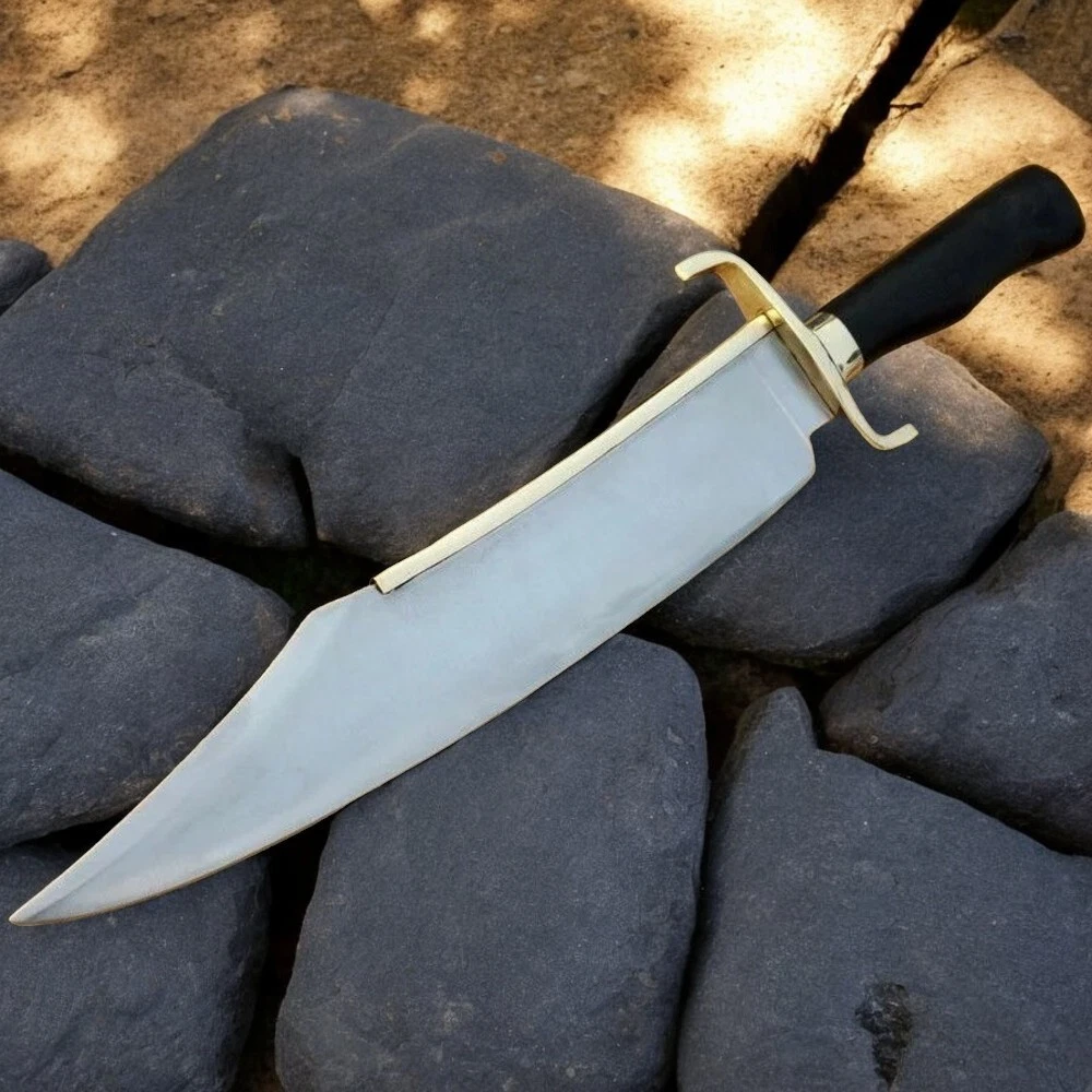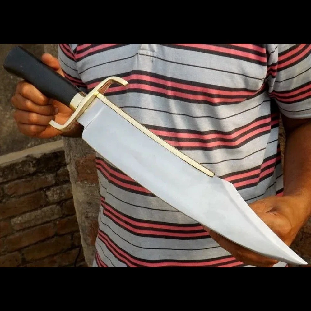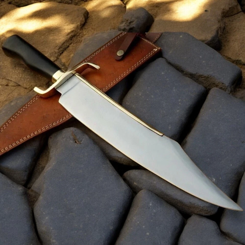 Dimensions: Overall Length: 20 Inches (Approximately) Blade Length: 14 Inches (Approximately) Handle Length: 6 Inches (Approximately) Materials: Blade Material: Carbon Steel. Handle Material: Buffalo Horn Fixed With Brass Guard. Leather Sheath: Premium Leather Sheath Will Be Provided. Shipping: Shipping through world-known company DHL and we ship worldwide. Remote area charges will be Buyer charged if the given delivery address is in DHL's remote area list. We make custom orders of hunting knives, Bowie knives, blank blades, swords, axes, Skinner knives, tracker knives. Custom and Laws: Customers will be responsible for their country’s customs and law rules. Restrictions: We don’t sell our items to those who are under 18. Tips for knife caring: 1. Never store your knife for a long time in the leather sheath. 2. Leather can absorb water, which can rust the blade. 3. After using always clean the blade with oil. Guaranteed Items: All our items are totally handmade. We use cowhide vegetable-tanned leather for the leather sheath. Your satisfaction is very important to us, if you experience a problem of any kind with your purchase please contact us first before leaving any feedback or opening any claims, any issues will be resolved more efficiently if you contact us first and deal directly with us. We do stand behind our products and will do anything in our power to make sure that you feel satisfied with your purchase. | Survival Knife | Christmas Gifts | Personalized Gift | Personalized Knife | Knives | Gifts For | Gifts for Men | Movie Collectable | Leather Sheath | Survival Knife | Tactical Knife | Anniversary Knife | Movie Knife | Sharp Knives | Birthday Gift | Valentin's Gifts | Replica Bowie | Gifts for Dad | Gift for Husband | Gifts for Him | Gifts for Boyfriend | Movie Props | Rambo Knife | Hunting Knife | Free Delivery | Outdoor Knife | Groomsmen Gifts Knife.
