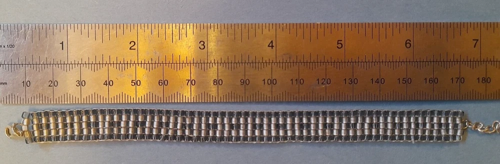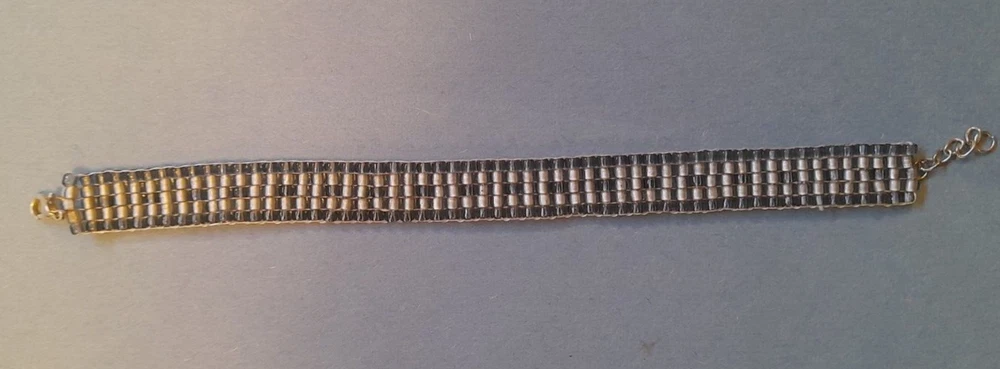 Beautiful Handmade Unique Seed Bead Bracelet Lobster Claw and chain fastening Dash Pattern Silver and Grey Overall length 180mm Please feel free to ask a question or make an offer