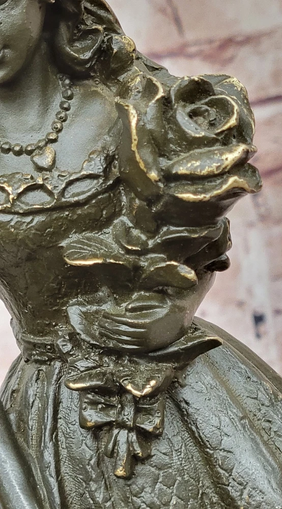 Hand Made Bronze Pageant Girl – Signed Patoue Decorative Art Deco Statue Hand Made Bronze Pageant Girl – Signed Patoue Decorative Art Deco Statue Condition : This sculpture is in perfect condition. Bronze Dimensions with Marble Base: Height 13" x Width 8" Marble Dimensions:8" X 8" Height without base:12" Weight:13 LBS Inventory:24GTS2278342 Celebrate grace and elegance with this limited edition bronze sculpture of a Southern Belle, delicately holding a flower in hand. Signed and numbered by the artist Jean Patoue, this charming young pageant girl embodies timeless beauty and poise, reminiscent of a bygone era of refinement and tradition. Expertly handmade using the revered lost wax method, the sculpture showcases remarkable detail—from the soft flow of her dress to the gentle expression on her face. The rich brown patina enhances the texture and warmth of the piece, making it a standout accent for any fine art collection. Mounted on a solid square marble base, this sculpture brings sophistication to any space and makes a wonderful gift for collectors, admirers of Southern heritage, or lovers of fine bronze art. Shipping Terms : Most of our items are shipped via USPS (United States Postal Service) mail or UPS. Most orders are shipped within 24-48 hours of purchase. Please be aware that not all items are available for USPS shipping due to size and weight. We do ship to Hawaii, Alaska, Canada, Puerto Rico, APO/AE, and U.S. Virgin Islands, however, an additional charge may be required. Please contact us before making any purchases in these areas. For Non-USA customers, you may be responsible for all duty, tax, brokerage fees that may be due upon delivery (shipping costs cover freight charges only). We also ship internationally. Please refer to the "Shipping and Handling" chart for the rates for each area. Payment : We accept just about any form of payment. PayPal, Master Card, Visa or American Express credit cards. Money orders, cashiers checks, and even personal or business checks. For governmental institutions, we will also accept a purchase order. Please understand that for personal or business checks we have to wait for the check to clear (usually 7 days) before shipping. Condition : New Detailed Hand Crafted Hot Cast Bronze Satisfaction Guaranteed. This is Stock Photo, Slight Color Variation!! Listing and template services provided by inkFrog