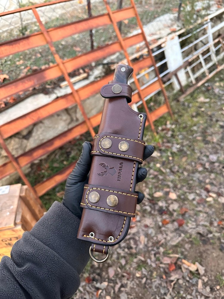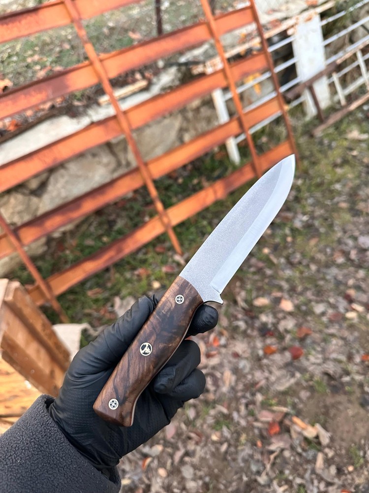 This entirely handmade, scandi-edged bushcraft knife is crafted for nature enthusiasts seeking control and durability. Made from the highest quality stainless N690 steel, it boasts exceptional sharpness, high corrosion resistance, and durability. This results in a knife of such quality that you can even pass it down to your grandchildren. Thanks to the scandi edge, you can easily handle tasks like chopping wood, starting fires, and carving trees in nature. You can even shave with its sharply sharpened blade! The stabilized wood used in the handle creates a unique design, making your purchase truly special! Its hard structure and smooth texture also provide ergonomic use! Hurry to get one of these amazing knives! It makes a fantastic gift option for nature lovers, hunters, and camping enthusiasts! Give your spouse, boyfriend, or father an unforgettable gift! π DETAILS π π Steel: N690 Stainless Steel π Hardness: 61 HRC π Grind: Scandi Grind π Construction: Fixed Blade π Total Length: 9.85 inch π Blade Length: 5.50 inch π Blade Thickness: 0.17 inch π Handle: Stabilized Wood (Walnut,Maple or Amboyna) π Sheath: 100% Handmade Leather Sheath