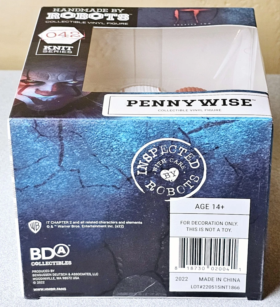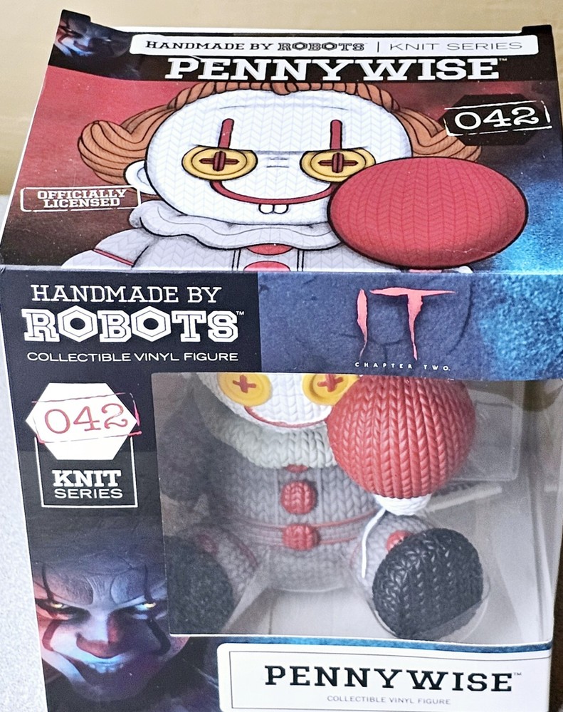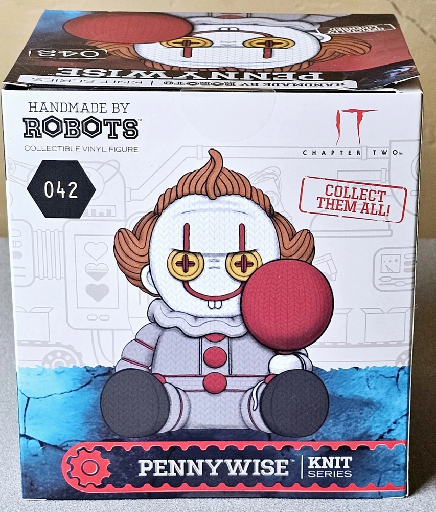 Box shows usual shelfwear , please review pictures before purchasing to better understand the condition of the item. Add Pennywise the Dancing Clown to your collection with this Handmade By Robots IT Chapter Two vinyl figurine. This multicolor full-size figure stands at 5 inches tall and features intricate details that are true to the character's design in the movie "It Chapter Two". The figure comes in its original packaging, which is unopened for added authenticity. This exclusive Made by Robots figure is part of the Knit Series and has the box number 042. It is made of high-quality vinyl material and is suitable for ages 14 and up. The figure is a must-have for any fan of the "It" franchise and is a great addition to any collectible figures and bobbleheads collection.