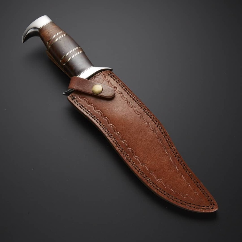 ✔ AN ICONIC DESIGN: This Crocodile Bowie knife is a classic and iconic design, known for its versatility and durability. Made with Carbon steel blade, this bowie knife is built to last and can withstand heavy use in a variety of conditions. ✔ A UNIQUE COMBINATION: The combination of Wood and Brass in this Bowie knife’s handle gives it a comfortable grip even in wet conditions and also add a touch of individuality to this already unique knife. ✔ AN IDEAL CHOICE: The bowie knife is the ideal choice for anyone looking for a reliable and versatile cutting tool, whether you’re a hunter, camper, or outdoor enthusiast. ✔ A SPECIAL GIFT: This Carbon steel Bowie knife is a kind of special gift for husband from wife, nice as dad gifts, anniversary or birthday, whether or not they are into knives. ✔ Dimensions Of this knife: overall length: 13 Inches, Blade length: 7.5 Inches, Handle size: 5.5 inches. Description · FREE Leather Sheath – Hand Made · 【 BUY with CONFIDENCE 】 🪓 ⚔ ️ Constructed to last and designed to perform, each Knife features a hand-hammered head with sharpened cutting edge. · 【 Durable Leather Sheath cover 】 This Knife is complete with a top quality extra thick leather sheath. The leather sheath is totally hand tooled and sewn. Extra thick leather and strong stitching make this sheath robust which can withstand years of rough and tough use. The sheath can be worn on belt. It comes with a Protection Sheath that protects you from the edge of the Knife blade and avoids any harm and damages. · 【 The Best Companion Of The Explorer 】 ⚔️ If you like adventure, camping, outdoor sports, please bring it, because it will be your most useful partner for exploring adventure! Size & Measurements : Over All Length : 15” Inches Blade Size : 10” Inches Handle Size : 5” Inches Fastest Shipping : We will give you a peace of mind guarantee that you can get knife within 5-10 working days after receiving the payment. Local Laws/ Customs Requirements; Please check your local laws about knives before purchasing we are not responsible for Items holding, destroying are any other actions taking by your custom office . Age Restriction: You Must Have To Be Over 18 Years Of Age To Purchase These Products, The Buyer is Fully Responsible For Local Laws And Regulations Concerning Purchase And Possession Of Knives, Swords And Other Cutlery Tools, By Making A Purchase You Are Confirming Our Age Policy.