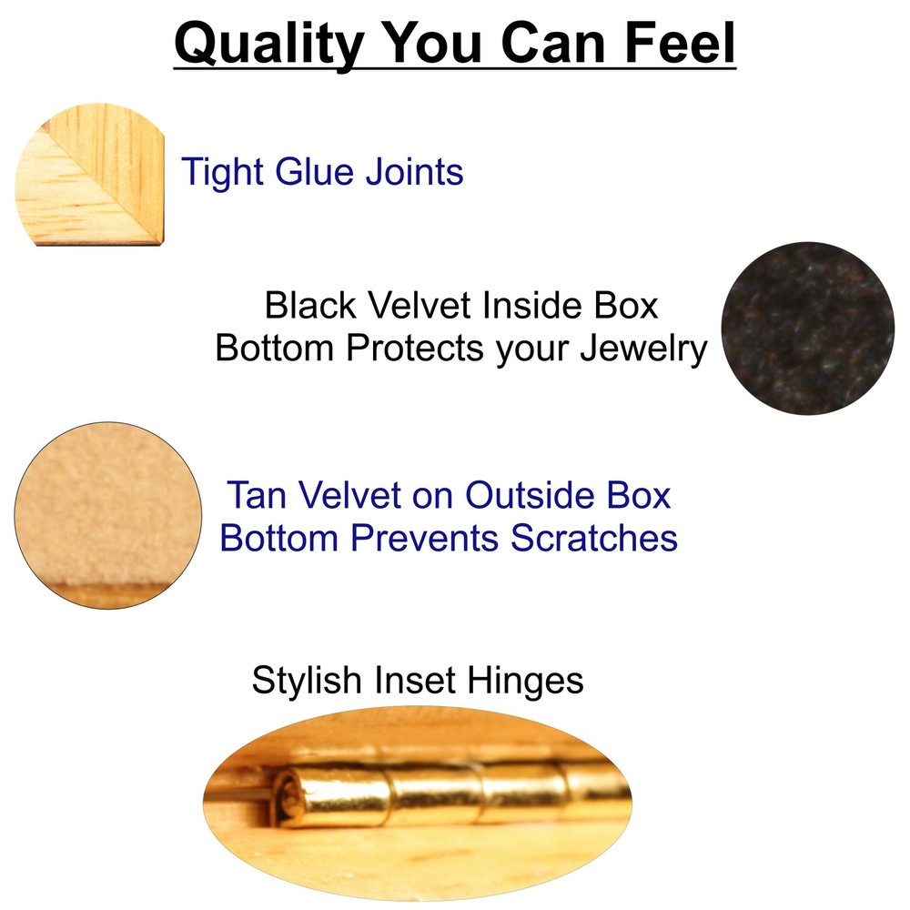 Wood Art Celtic Box - Handmade USA - Unmatched Quality - Unique, No Two are the Same - Original Work of Wood Art. A Celtic Gift, Ring, Trinket or Wood Jewelry Box (4852 Celtic Knot 4x5x1.5) - Buy Now with Fast Shipping! Wood Art Celtic Box - Handmade USA - Unmatched Quality - Unique, No Two are the Same - Original Work of Wood Art. A Celtic Gift, Ring, Trinket or Wood Jewelry Box (4852 Celtic Knot 4x5x1.5) Product Details Brand: MarqArt Color: CELTIC KNOT BOX (#4852 size: 4"x5"x1.5") Material: Hardwood Special Feature: This is a High Quality, Handmade Jewelry Box - not some cheap foreign imported thing that will arrive broken, scratched, marred or smelling of chemicals., This unique wood box is expertly crafted. The wood has a fine satin finish that minimizes smudges or finger prints and keeps it looking new., Solid Sturdy Construction - It will not Fall Apart. It is designed and built to last a lifetime, it will not fall apart after a few days, weeks or months like many of our competitors imported products., This unique wood trinket boxes inside is lined with black velvet to protect your jewelry., The jewelry boxes bottom is finished in a fine tan velvet to help protect your furniture. See more Style: Celtic Box Brand: MarqArt Color: CELTIC KNOT BOX (#4852 size: 4"x5"x1.5") Material: Hardwood Special Feature: This is a High Quality, Handmade Jewelry Box - not some cheap foreign imported thing that will arrive broken, scratched, marred or smelling of chemicals., This unique wood box is expertly crafted. The wood has a fine satin finish that minimizes smudges or finger prints and keeps it looking new., Solid Sturdy Construction - It will not Fall Apart. It is designed and built to last a lifetime, it will not fall apart after a few days, weeks or months like many of our competitors imported products., This unique wood trinket boxes inside is lined with black velvet to protect your jewelry., The jewelry boxes bottom is finished in a fine tan velvet to help protect your furniture. Style: Celtic Box Recommended Uses For Product: For storage, Jewelry Product Dimensions: 5.25"L x 4"W x 1.5"H Capacity: 1 Pounds Water Resistance Level: Not Water Resistant Item Weight: 5.76 ounces Opening Mechanism: Hinge Shape: Rectangular Pattern: Letter Print Number of Items: 1 Number of Compartments: 1 Unit Count: 1.0 Count Item Package Quantity: 1 Material Feature: mature plantation trees that are no longer able to produce latex UPC: 098801000206 Closure Type: Hinge Item Weight: 5.8 ounces Manufacturer: MarqArt Wood Designs Item model number: 4852 Is Discontinued By Manufacturer: No Date First Available: December 13, 2013 Key Features ✅ Unmatched Quality . . Sturdy Construction - Designed and Built to last a Lifetime ✅ An Original work of Art - No two are the same. . Using Sustainable Forest Resources ✅ Hand Made in the USA - Not some cheap foreign import. . . . . Size: 4x5x1.5 Inches ✅ This Design shows 38 individual pieces and 3 unique wood species. ✅ We are a small, family run business. We are proud of our work & we stand behind it. Product Description