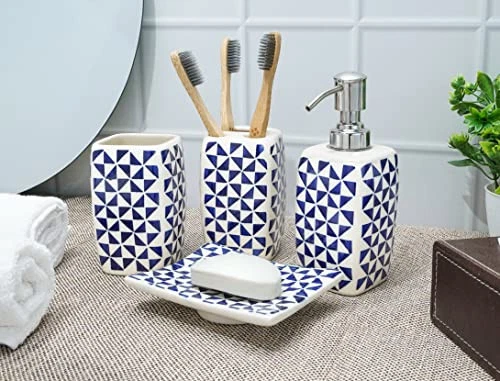30 Days Return Policy Fast Delivery Trusted seller Handmade Ceramic Bathroom Accessories Set of 4 Soap Dispenser Toothbrush Stand Soap Dish/Tray Tumbler Home Decoration Bathroom Countertop Vanity Organizer Complete Bath Luxury Accessory Product Description ✨ GORGEOUS CERAMIC BATHROOM ACCESSORIES SET: This beautiful Handmade ceramic bathroom set is completely hand-painted by skilled craftsmen, Gives nature touch to your bathroom, Their beauty will last through out the years. Made of premium quality material & It is also dishwasher safe. you can easily clean up every piece in the set. ✨ QUALITY CERAMIC SET: 4 pcs Set of bathroom accessory set is Handmade of high quality ceramic that can easily last for longer. Soap Dispenser (Refillable) 2.5x2.5x6.5" (LxWxH) Rust Proof Pump, Brush Stand 2.5x2.5x4.5" (LxWxH), Mouthwash Cup 2.5x2.5x4.5" (LxWxH), Soap Dish/Tray 5x3.8x1.2" (LxWxH) Approx. Dazzlingly complement your modern bathroom or home decor with this beautiful ceramic set. ✨ COMPLETE LUXURY SET: Your bathroom deserves the best, We providing everything you'll ever need to keep your bathroom fully functional, It's easy to use and add a sense of luxury to your bathroom. The Blossom, Watercolors and beautiful natural hand-painted designs can add a gorgeous classy look to your home decoration. ✨ HANDMADE CLASSY DESIGN: Adds style and elegance to your bathroom counter, earn compliments from guests, each design painted on the beautiful surface by artisan hands, The bath set is a classic contemporary design in that can be added to any bathroom decor to make it look elegant and organized. ✨ IDEAL GIFT: Bless your selves and your loved ones with this beautiful handmade ceramic bathroom accessory set on any special occasion, Our all products are handmade you will receive the similar item as picture shown, t may exists slight deviations in color and looks Due to Photographic effect. Shipping Returns Payment Shipping Shipping is FREE to all addresses other than APO/PO boxes in the lower 48 states. All our stock ships from US-based warehouses. Shipped via USPS or UPS (depending on location and package weight) Unless stated otherwise, all orders will ship within 24-72 hours of your payment being processed. Check our feedback to see the great reviews of FAST shipping we offer. Returns As our valued customer, we will do our best to make sure the product you receive arrives to you on time and as expected. If you are not satisfied with your purchase, please contact us within 30 days of receiving your order to process a return. Payment We currently accept payment via eBay managed payments only. Once payment is cleared, we will dispatch your shipment within 1-3 business days. Please refer to the "Shipping" tab for more information regarding shipping speed to your destination.