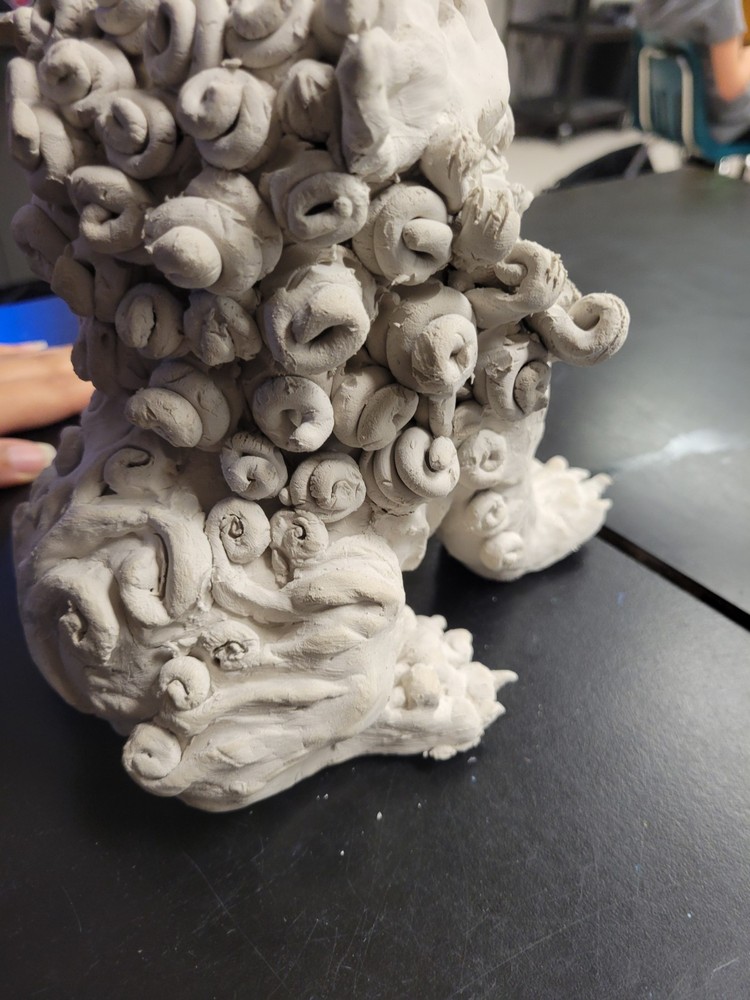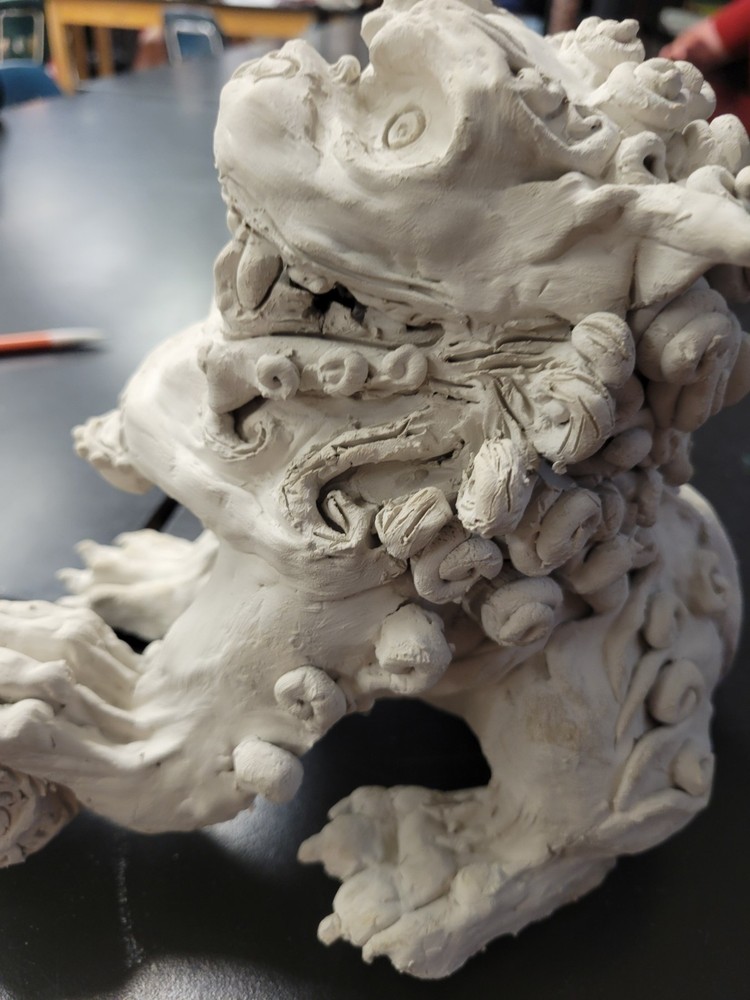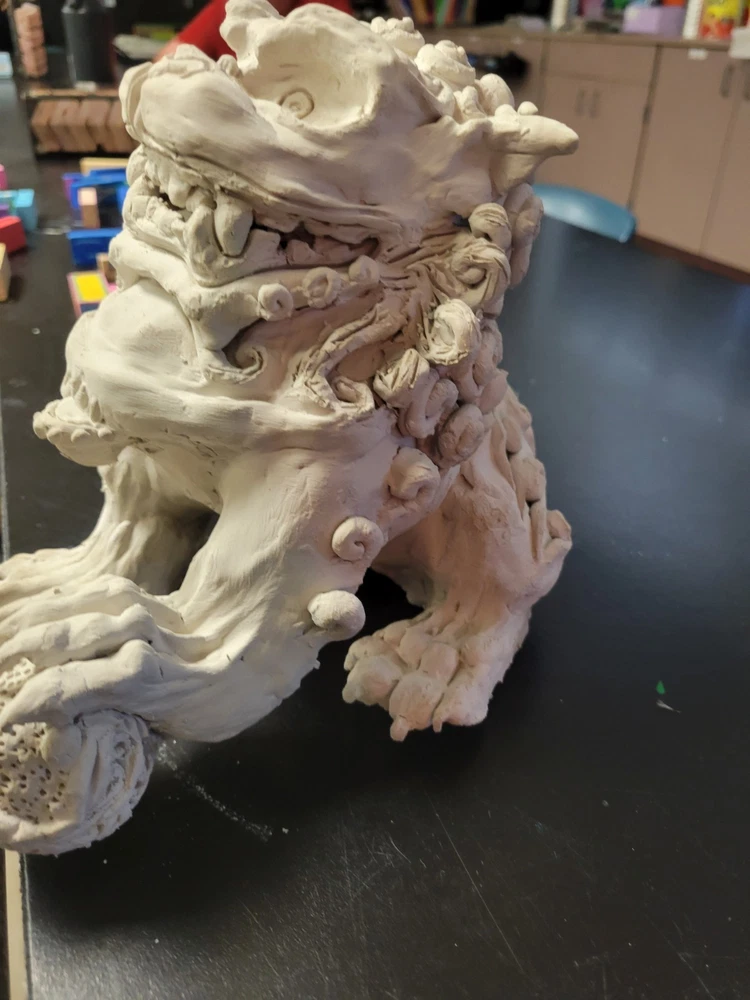 This Handmade Ceramic Chinese Lion Guardian Statue is a unique and authentic piece of art created by the artist, myself. The sculpture is medium-sized, measuring 7 inches in length and 8 inches in height, with a width of 9 inches. This 1st edition statue is carved from clay and features intricate details, embodying the Chinese culture with its Chinese style and theme of animals. Signed by the artist, this ultra-contemporary piece was crafted in Florida, USA in the year 2025, making it a valuable addition to any art collection.