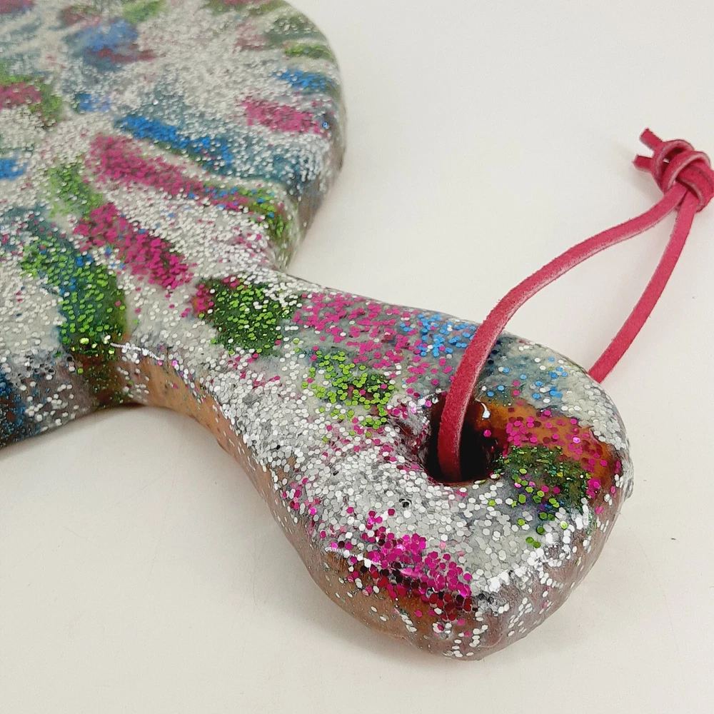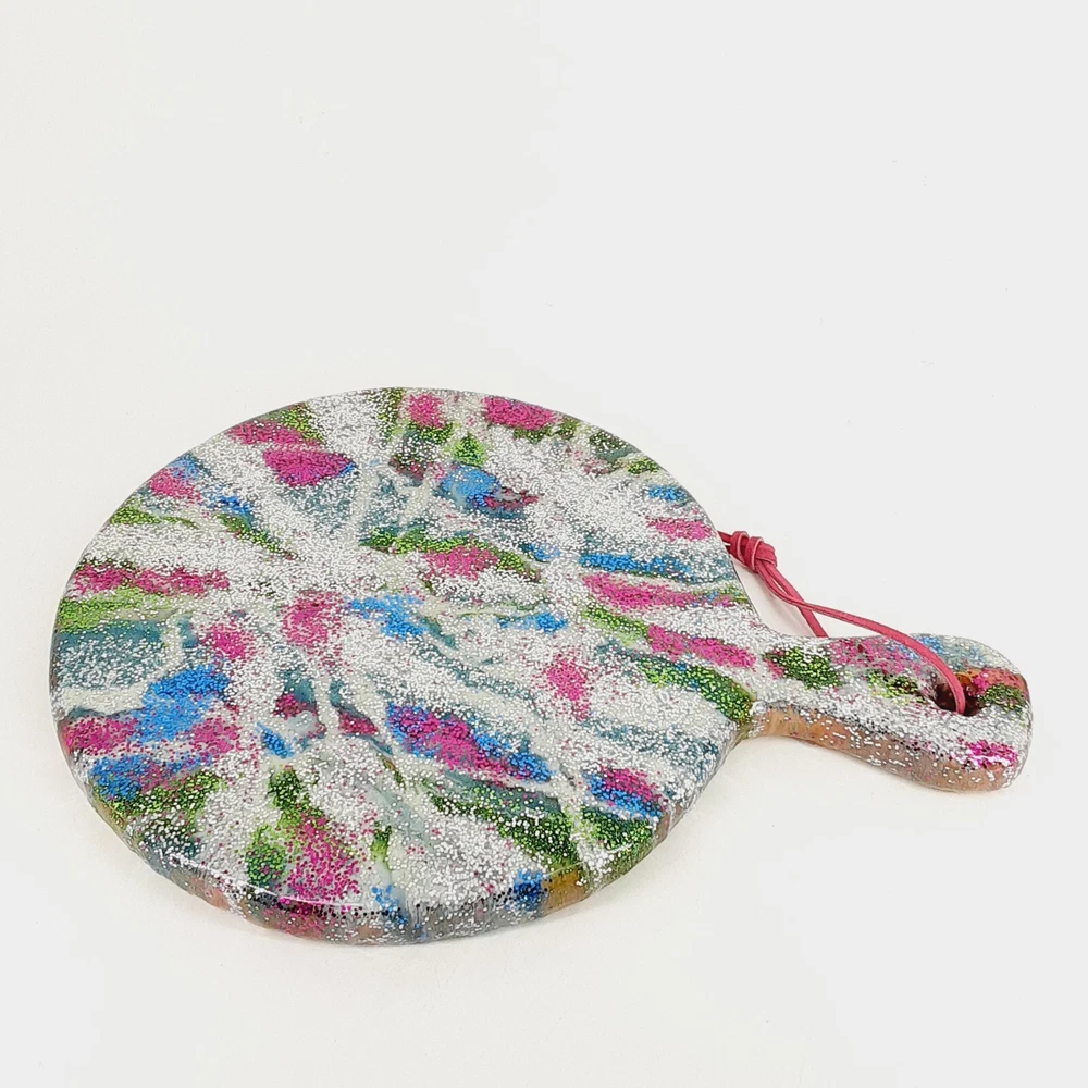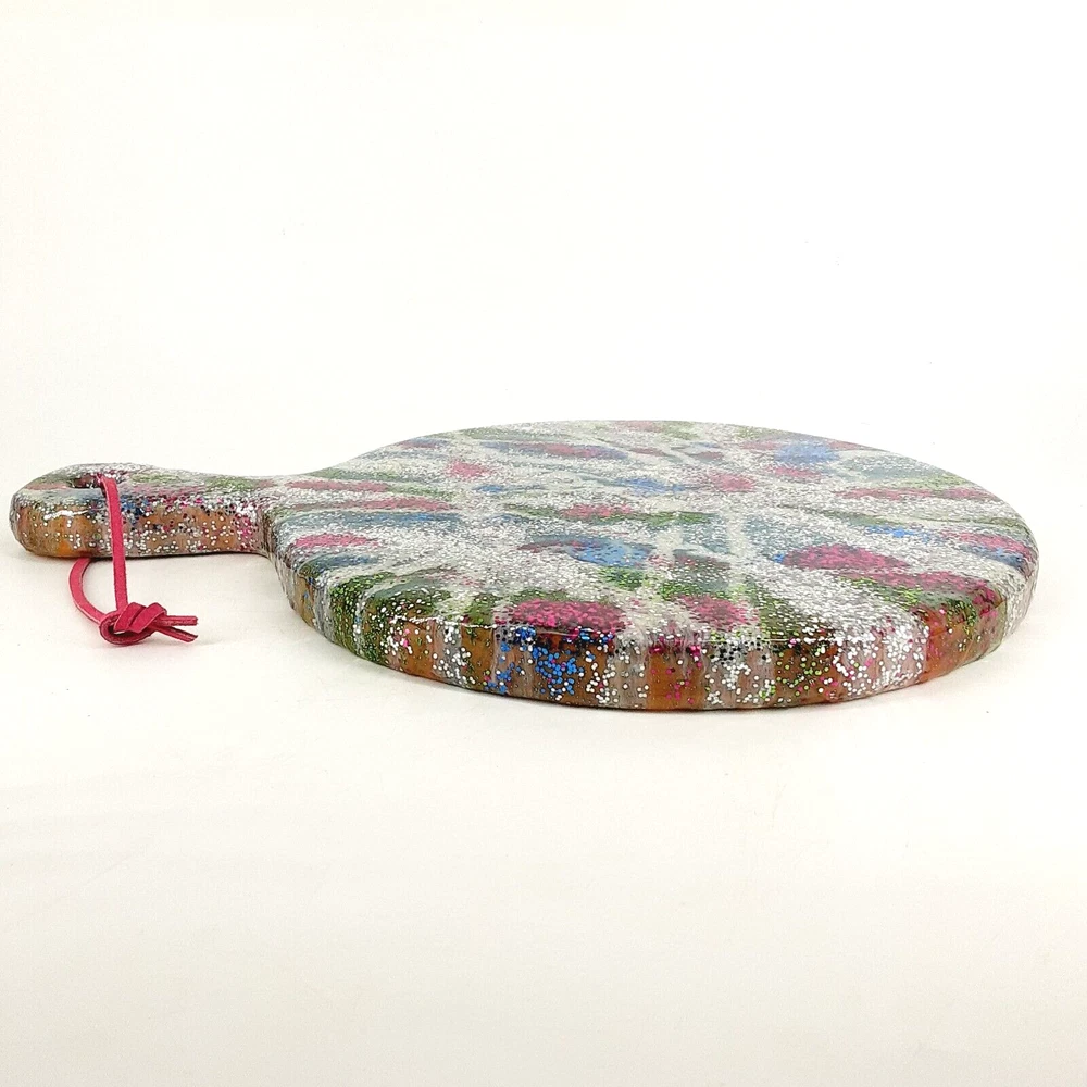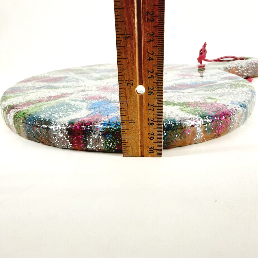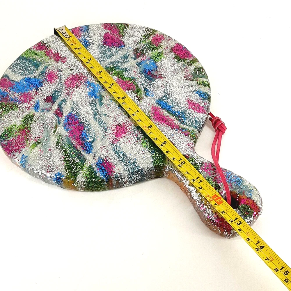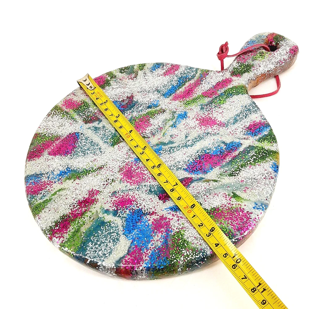 WE APPRECIATE OUR CUSTOMERS THANK YOU FOR SHOPPING WITH US!! Handmade Charcuterie Board Serving Tray Resin with Glitter Farmhouse Shabby Chic Add a statement of elegance to your kitchen with this Handmade Charcuterie Board Serving Tray. Crafted from resin, this board is perfect for serving cheese, fruits, and other snacks. The abstract design gives it a unique country style that can complement any kitchen. The board is easy to clean, but remember to hand wash only. This round board has a Diameter of 9.5". Its size can be referred to in the pictures. The colors of the board have lots of glitter pink, green & silver. Made in the United States. *Please look at pictures as they are part of the description/details. *Good Preowned Condition *Thanks for looking! Please remember items listed as vintage or used will typically show age appropriate wear. I have provided lots of photos for you to see the general condition of each item. If you would like any further photos or information, please contact me and I will be happy to try and help. I do my best to describe items accurately. Pictures are considered part of the description. Cameras and/or computers can sometimes slightly alter colors. Any measurements should be considered approximate. If you need an exact measurement, please ask. Terms and Conditions : Once a purchase has been made, it is legally binding contract. Payments: Payment is due when purchase is made, Thank you for your prompt payment. *If payment is not received within 4 days of purchase, then a Non-Paying Buyer Dispute will be filed, and eBay may mark it against your account. SHIPPING: We ship daily (Mon-Fri not to include holidays) and will ship within two business day of receiving payment! I do accept returns if you are unhappy with your item for any reason. I ask that it be returned in the original condition you received it in. I take pride in shipping items carefully. However, if an item arrives damaged, please contact me immediately. All shipping materials (box, poly bag, bubble wrap, paper, etc.) must be kept, as well as it is necessary to take 7 pictures to document exterior damage of the box, as well as the interior damage of the item(s) that was purchased. This documentation is required to file a damage claim with both USPS and UPS. Upon Receiving : If you are satisfied with your product(s), please leave some positive feedback. *We love hearing that you have received your purchase(s), and are content, delighted, and untroubled. *Once you receive your purchase(s), please inspect them for any damage during transit. Report any damage within 24hrs via eBay e-mail. Return Policy : You may return unworn, unwashed merchandise in its original condition with all tags attached. If you bought a brand-new item, it MUST be returned brand new (Sealed and Any returns MUST be sent back to us complete and in the same condition as delivered to you Unopened). Items must be in new or original condition (free of odor, markings etc.) and ready for resale. Any serial or product numbers must match the purchased item for refund. PLEASE NOTE that shipping will not be refunded . Upon time of purchase, you are agreeing to this return policy. CHECKOUT: Please make sure that your address on file with eBay is complete and correct as we must use the address you have with eBay. *If you have any questions about your purchase, delivery, or a possible product return; Please contact us immediately and directly through your eBay accounts message center! *We are Eco-Friendly, leaving the lightest possible impact on our environment! Whenever possible we will reuse packing material to aid with our Eco goals. Customer service and feedback: If you have any questions about your purchase, delivery, or a possible product return; Please contact us immediately and directly through your eBay account message center! Your satisfaction is our top priority! Our goal is to earn your 5-star 100% feedback. Thank You for buying from us!