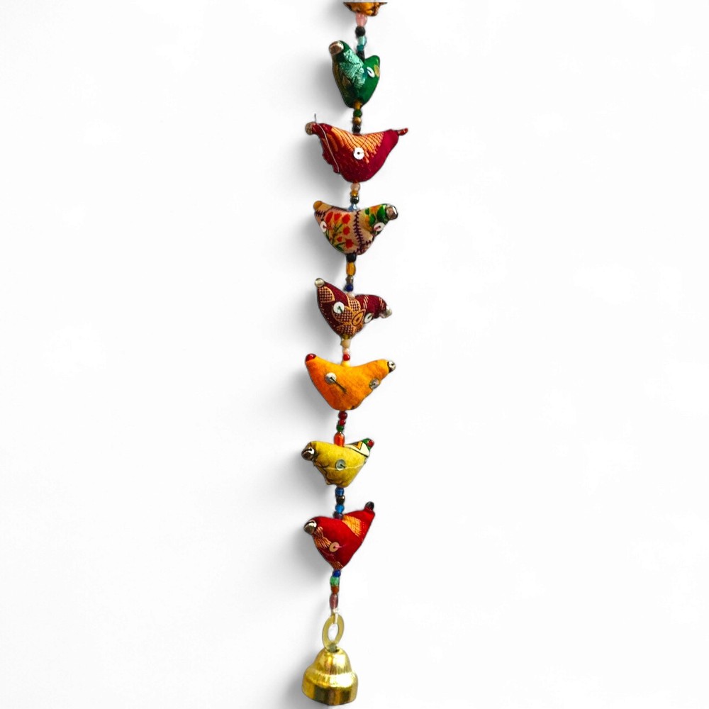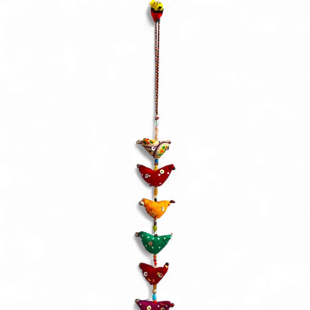 Brighten up your space with this vibrant Handmade Bird Hanging! Crafted by skilled Indian artisans, this stunning wall and door hanging features a colorful chain of fabric birds adorned with mirrors, beads, and a traditional bell. It’s the perfect fusion of boho charm and ethnic Indian craft, ideal for home, balcony, patio, or gifting during festivals like Diwali and Christmas. Key Features: 100% Handmade with love in India Multicolor birds in assorted fabrics Accented with tiny mirrors, beads & embroidery Includes a decorative metal bell at the bottom Length: Approx. 30–36 inches (varies slightly as handmade) Lightweight and easy to hang Perfect For: Boho wall decor Housewarming or spiritual gifts Doorway, living room, kids’ room, or meditation spaces Add a touch of joyful tradition and handcrafted beauty to your home today!