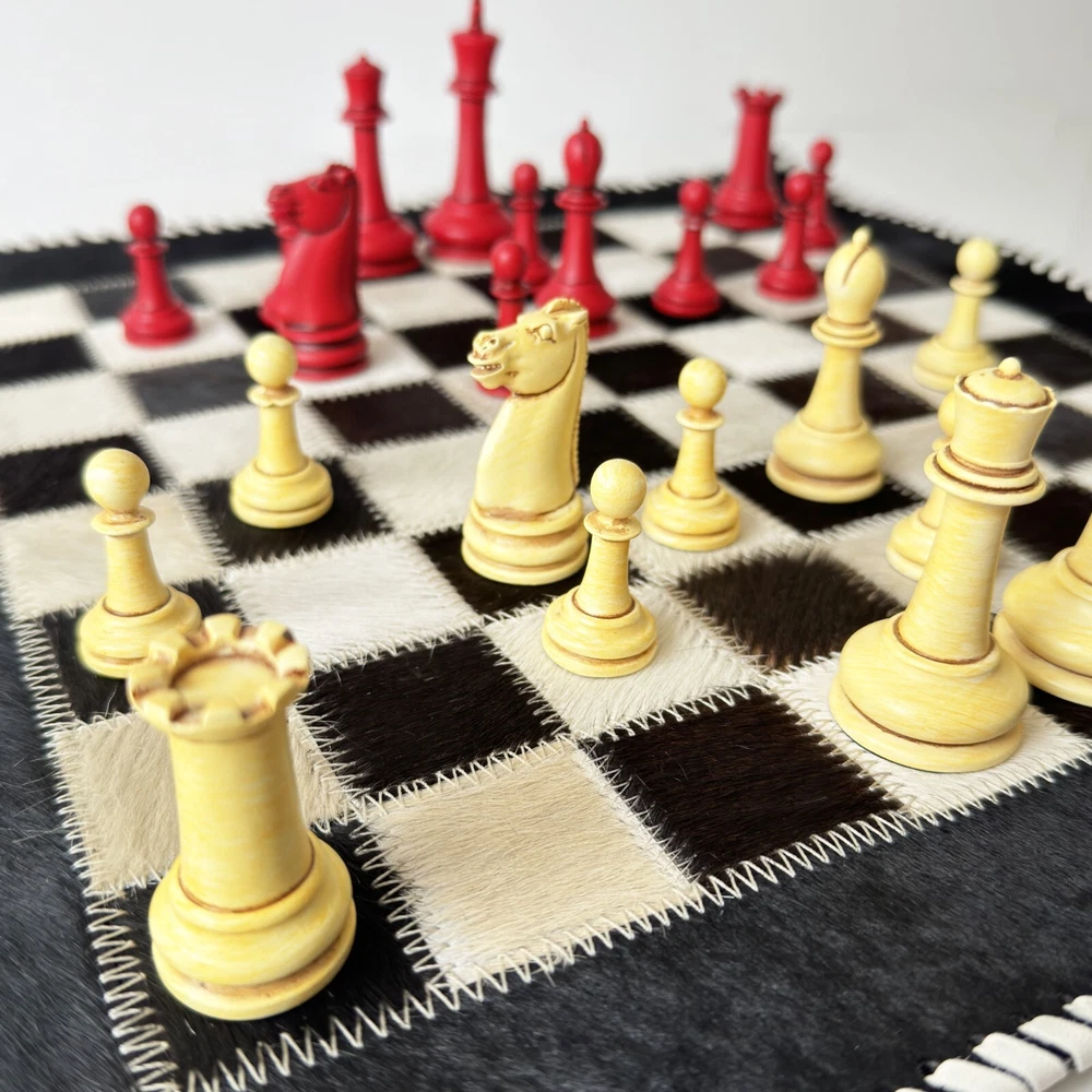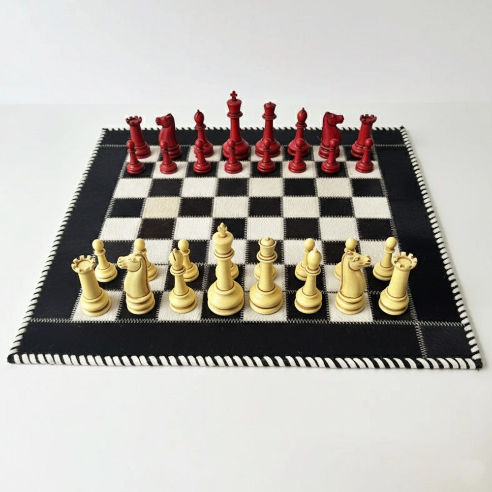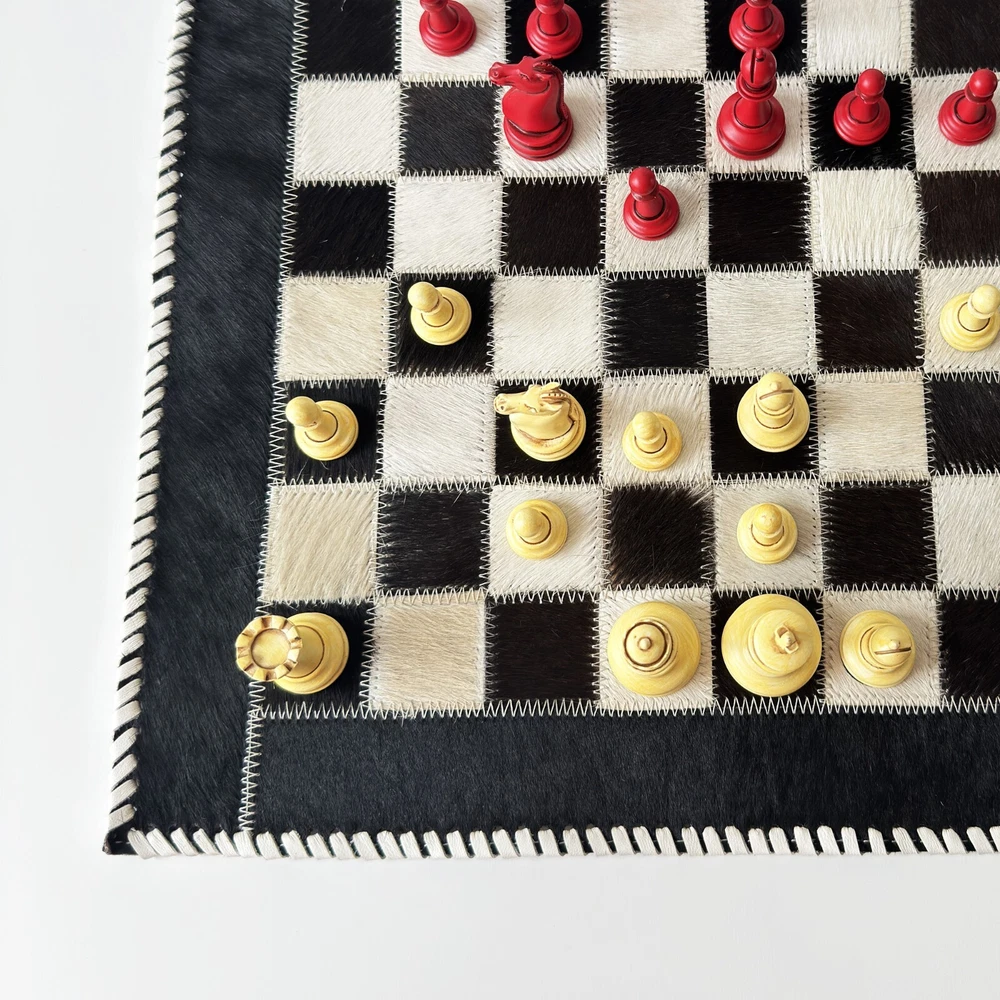 Description Upgrade your game nights with this handcrafted Cowhide Leather Chess Board. Designed with premium cowhide and stitched detailing, it blends durability with elegance. Perfect for collectors or casual play, this board makes a refined addition to any home or game room. Size: 16" L x 16" W Square Size: 1.5" Material: Genuine cowhide leather Chess Pieces: Not included Key Features: ✔️ Handcrafted from premium cowhide leather ✔️ Elegant black-and-white design with stitched detailing ✔️ 16" board with 1.5" squares for comfortable play ✔️ Durable and long lasting construction ✔️ Perfect for collectors, gifts, or stylish home décor Bring timeless sophistication to your chess matches with this artisan-made leather chessboard.