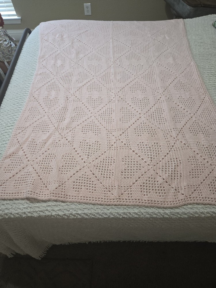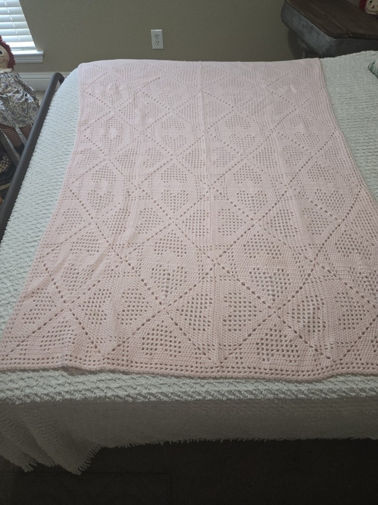 This beautifully hand-crocheted Afghan blanket is the perfect addition to any baby girl's nursery. Measuring 54 x 42 inches, it is designed to fit snugly over your little one's crib. The pink color and girl/pink theme make it a stylish choice for any baby girl's room. Made from high-quality crochet/knit material, this blanket is soft and cozy, providing the perfect warmth and comfort for your little one. With its multi-purpose blanket type and crochet features, it is a versatile choice for any baby girl's nursery. Whether you are looking for a decorative accent or a functional piece of nursery bedding, this hand-crocheted Afghan is an excellent choice.