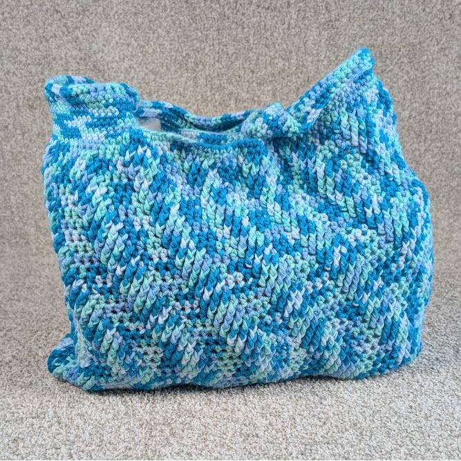 Handmade Crochet Blue Wave Tote Bag for Beach or Market
