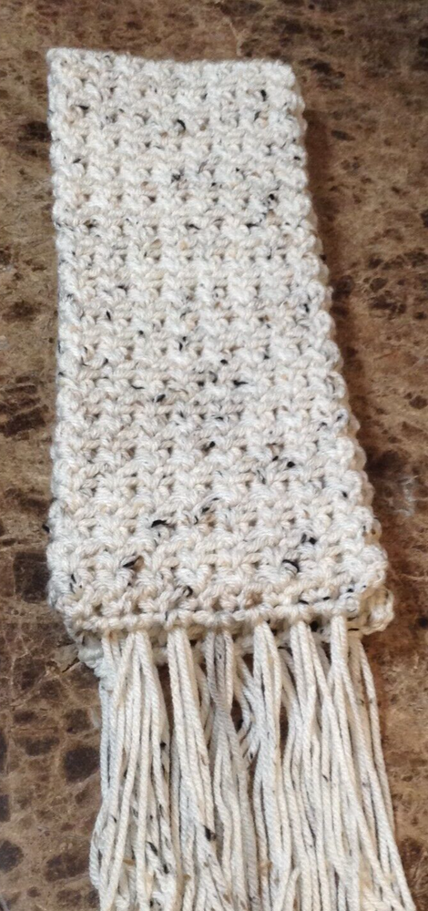This soft & warm scarf is the perfect scarf for yourself or gift. Ready to mail USPS with tracking Color: Ivory Tweed (blend of ivory, brown and black colors) - Size: 4.5 x 54 - 97% Acrylic Yarn & 3% Viscose Crocheted by me with love and care to every detail. Machine wash in lukewarm water, place in delicate washing bag to protect scarf. Do not bleach, dry clear or iron. Dry on low heat. Thank you for visiting my shop #753