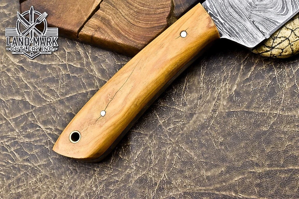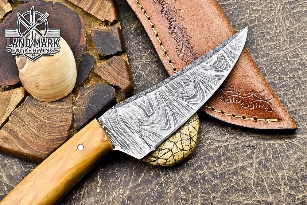 Custom Hand Made DAMASCUS STEEL HUNTING KNIFE WITH OLIVE WOOD HANDLE We offer a shipping discount for More then one purchased . And discount will be apply on combine invoice, Discount will not apply on separate payment. ITEM DETAILS OVER ALL LENGTH 8.0 inches long (Approx) HANDLE LENGTH 4.0 inches long (Approx) BLADE LENGTH 4.0 inches long (Approx) BLADE HARDNESS 58-60 HRC Which Holds The Sharp Edge For Long Time. HANDLE OLIVE WOOD COVER LEATHER SHEATH This Awesome custom made KNIFE has a nice hand forged with the combination of 4340 & 1080 steel. HOW OUR DAMASCUS IS MADE: All our Damascus is real and not just an acid etch. Damascus is a mixture of 1080HC and 4340 nickel carbon. You heat them up together and then fold the bar over and over to get the desired layers, ours are 396 layers. Then you burn the blade in acid, and it turns the nickel satin color and the high carbon turns blackish gray. This is how the layers are exposed to show the layers of the new steel created coined "Damascus". All Damascus is acid etched to show the layers. If you high polish the metal it will be shinny satin like all steels. Only after you burn the sides of the blade with acid do you see the layers of the two steels. Makes sense? After we make our knives we high polish the handles and put an edge on the blade. The high polishing buffs off the acid burned layer of the handle, and the blade edge is sharpened and the acid burned edge becomes satin. You can re-burn the tang of the blade near the handles and the edge of the blade and it will show the layers once more. All our knives are hand made, durable and unique ***** YOU WILL RECEIVED THE SAME KNIFE Qality Standards Our Damascus blades are made from high quality non-stainless steels which rival or exceed any Damascus blade made from the 10 series with 4340. Our Damascus combination has taken years to perfect and has been tested under a variety of application which will offer professional performance in categories of toughness, strength (lateral stress) and edge honing and holding ability. In a 5 spot Rockwell test our blades will average near or close to 58 which offers a perfect balances between its toughness and strength.Our blades due to carbon content need to be regularly treated with wax and/or 3 in 1 oil to maintain its superior quality. Questions if you have any question feel free to send us message we aim to answer all questions within 24 hours Feedback If you are not satisfied with our service please contact us before leaving any negative or natural feedback. We will resolve all issues as quickly as possible. Disclaimer We are not responsible for any injuries associated with the use of our tools. Our products are intended for legal use only by responsible buyers. Therefore, we will not sell our products to anyone under the age of 18. Before bidding please check your country laws as some countries Custom don't allow this. If your purchase is held by Custom Authorities in your country/State we will not be responsible for that and no refund will be issued Shipping We offer a 20% shipping discount for More then one purchased . And discount will be apply on combine invoice, Discount will not apply on separate payment We ship within 24 hours after receiving complete payment but this can be delayed due to week ends or Governments and Religious Festivals . . This is beyond our control and we apologize for this inconvenience. Precautions Our Tools are very sharp so open and use them very carefully We are not responsible for any injuries associated with the use of our tools Tips to Care knife 1. NEVER STORE YOUR KNIFE FOR LONG TIME IN LEATHER SHEATH. 2. LEATHER CAN ABSORB WATER, WHICH WILL RUST THE KNIFE. 3. ALWAYS CLEAN THE BLADE AFTER USING WITH OIL OR WAX