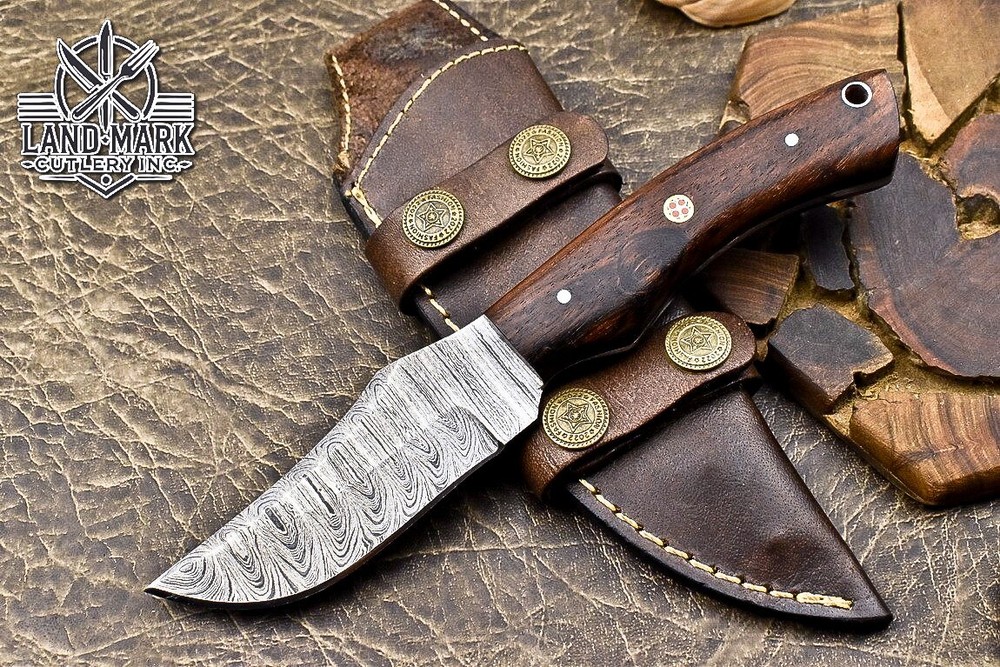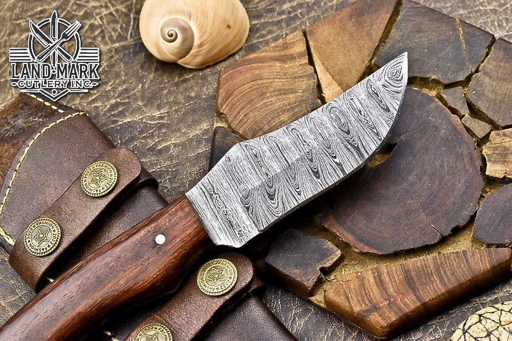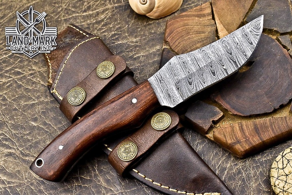 Custom Hand Made DAMASCUS STEEL HUNTING KNIFE WITH ROSE WOOD HANDLE We offer a shipping discount for More then one purchased . And discount will be apply on combine invoice, Discount will not apply on separate payment. ITEM DETAILS OVER ALL LENGTH 8.0 inches long (Approx) HANDLE LENGTH 4.0 inches long (Approx) BLADE LENGTH 4.0 inches long (Approx) BLADE HARDNESS 58-60 HRC Which Holds The Sharp Edge For Long Time. HANDLE ROSE WOOD COVER LEATHER SHEATH This Awesome custom made KNIFE has a nice hand forged with the combination of 4340 & 1080 steel. HOW OUR DAMASCUS IS MADE: All our Damascus is real and not just an acid etch. Damascus is a mixture of 1080HC and 4340 nickel carbon. You heat them up together and then fold the bar over and over to get the desired layers, ours are 396 layers. Then you burn the blade in acid, and it turns the nickel satin color and the high carbon turns blackish gray. This is how the layers are exposed to show the layers of the new steel created coined "Damascus". All Damascus is acid etched to show the layers. If you high polish the metal it will be shinny satin like all steels. Only after you burn the sides of the blade with acid do you see the layers of the two steels. Makes sense? After we make our knives we high polish the handles and put an edge on the blade. The high polishing buffs off the acid burned layer of the handle, and the blade edge is sharpened and the acid burned edge becomes satin. You can re-burn the tang of the blade near the handles and the edge of the blade and it will show the layers once more. All our knives are hand made, durable and unique ***** YOU WILL RECEIVED THE SAME KNIFE Qality Standards Our Damascus blades are made from high quality non-stainless steels which rival or exceed any Damascus blade made from the 10 series with 4340. Our Damascus combination has taken years to perfect and has been tested under a variety of application which will offer professional performance in categories of toughness, strength (lateral stress) and edge honing and holding ability. In a 5 spot Rockwell test our blades will average near or close to 58 which offers a perfect balances between its toughness and strength.Our blades due to carbon content need to be regularly treated with wax and/or 3 in 1 oil to maintain its superior quality. Questions if you have any question feel free to send us message we aim to answer all questions within 24 hours Feedback If you are not satisfied with our service please contact us before leaving any negative or natural feedback. We will resolve all issues as quickly as possible. Disclaimer We are not responsible for any injuries associated with the use of our tools. Our products are intended for legal use only by responsible buyers. Therefore, we will not sell our products to anyone under the age of 18. Before bidding please check your country laws as some countries Custom don't allow this. If your purchase is held by Custom Authorities in your country/State we will not be responsible for that and no refund will be issued Shipping We offer a 20% shipping discount for More then one purchased . And discount will be apply on combine invoice, Discount will not apply on separate payment We ship within 24 hours after receiving complete payment but this can be delayed due to week ends or Governments and Religious Festivals . . This is beyond our control and we apologize for this inconvenience. Precautions Our Tools are very sharp so open and use them very carefully We are not responsible for any injuries associated with the use of our tools Tips to Care knife 1. NEVER STORE YOUR KNIFE FOR LONG TIME IN LEATHER SHEATH. 2. LEATHER CAN ABSORB WATER, WHICH WILL RUST THE KNIFE. 3. ALWAYS CLEAN THE BLADE AFTER USING WITH OIL OR WAX