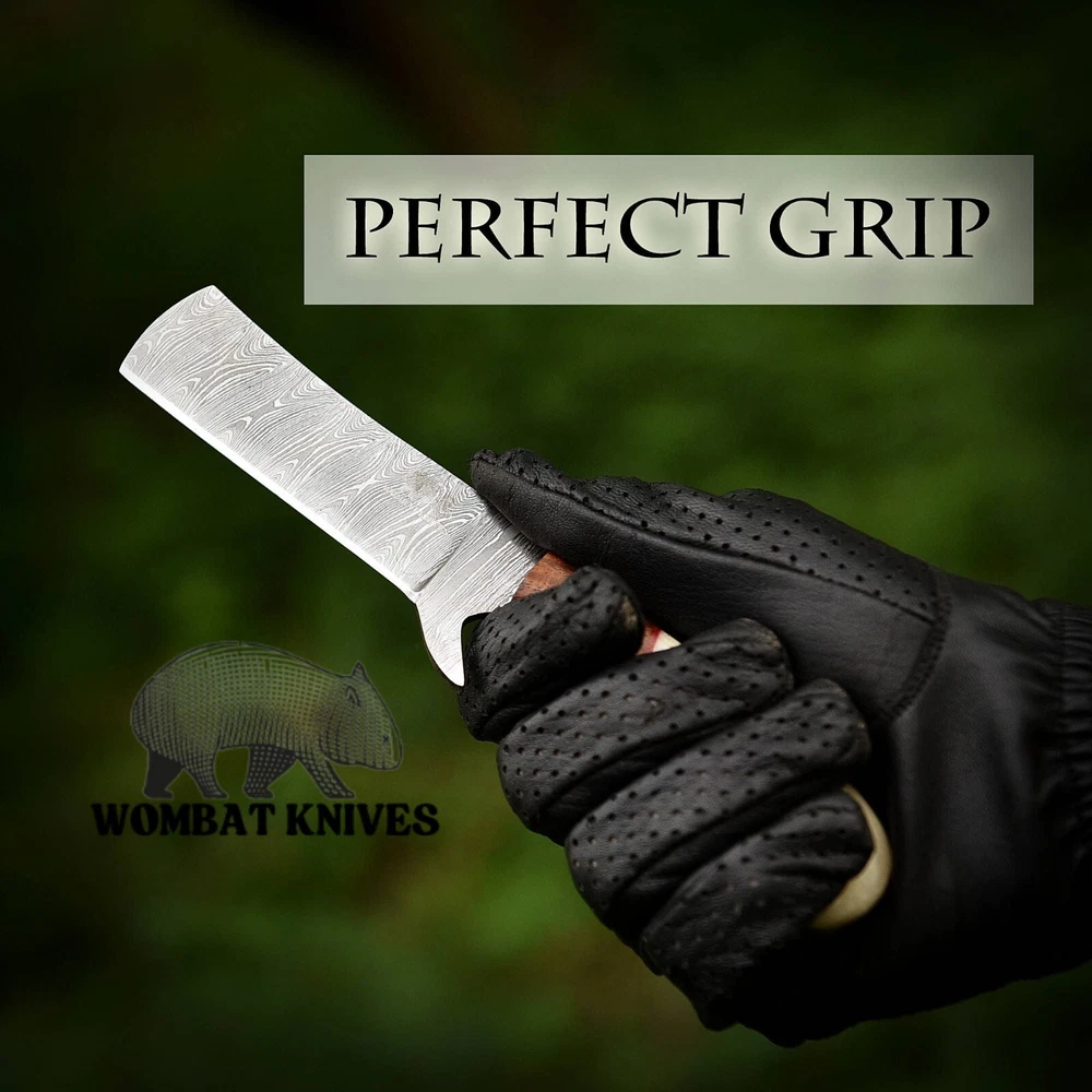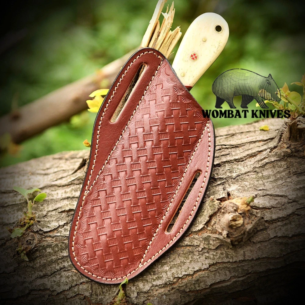 WOMBAT KNIVES Handmade Damascus Steel Cowboy Bull Cutter Knife with Leather Sheath, Fixed Blade Hunting Knife, EDC Skinning, Camping, Outdoor Utility knife Overall length: 8" Inches Handle length: 4" Inches Blade length: 4" Inches Material Used in handle: Camel Bone and walnut Wood Blade material: Damascus Steel Twist Pattern Leather Sheath: Pancake Cross Draw Leather sheath Comes With knife great and premium Quality Finishing. Multiples Purpose: The cowboy fixed blade knife is versatile, serving as both an everyday carry (EDC) knife and excelling in various outdoor activities. Its functionality extends to being an ideal bushcraft knife, camping companion, western cutlery tool, and lineman knife. With its sharp blade, it's well-suited for sporting events, fishing, wood chopping, and more. Ideal Gift: The Damascus Steel hunting knives for men are expertly designed to both serve and impress, making them excellent gifts for loved ones. The cowboy fixed blade knife, accompanied by a pancake leather sheath, is a perfect choice for special occasions such as weddings, Christmas, birthdays, Father’s Day, Brother’s Day, or Valentine’s Day.