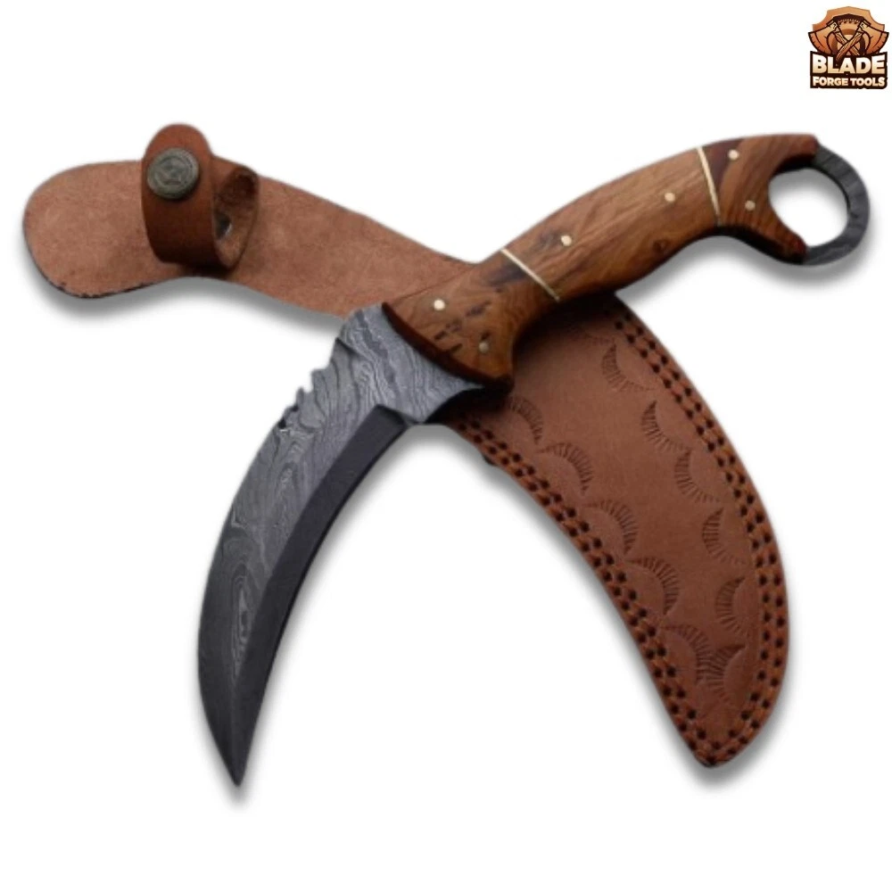 🪓⚔ Constructed to last and designed to perform, each Knife features a hand-hammered head with sharpened cutting Forged edge. Durable Leather Sheath cover: This Knife is complete with a top quality extra thick leather sheath. The leather sheath is totally hand tooled and sewn. Extra thick leather and strong stitching make this sheath robust which can withstand years of rough and tough use. The sheath can be worn on belt. It comes with a Protection Sheath that protects you from the edge of the Knife blade and avoids any harm and damages. Lightweight easy to carry. Knife total length: 10 inches, Blade Length: 5 inches The Best Companion Of The Explorer: ⚔ If you like adventure, camping, outdoor sports, please bring it, because it will be your most useful partner for exploring adventure! Excellent Design- Ergonomically designed handle, feels great to hold in your hand and comfortable to use.