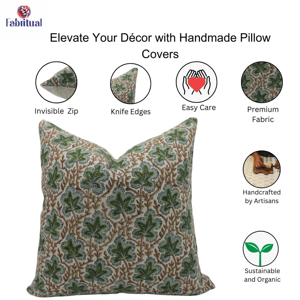 [CONCEALED ZIPPER]: These Throw Pillow Covers for the couch allow for effortless insertion and removal of pillows, ensuring a clean and elegant look. No more struggling with premium long invisible zippers; simply slide in your pillow, zip up, and enjoy a seamless appearance. [HANDMADE CHARM]: Each piece boasts a unique and adds a dash of charm to every setting. Finished with sharp knife edges for a modern, polished silhouette, use these throw pillows to achieve your decorating inspiration. Our unique and decorative pillows will add a fashionable touch of elegance to any room. Enhance your space with our handloom art block printed pillows and cushions covers crafted for both styles and make a fantastic vibrant addition to any room. [VERSATILE USE]: Our Pillow Covers are applied to indoor places such as living rooms, bedrooms, offices, guest rooms, leisure bars, cafes, restaurants, and business clubs. It is the best decoration choice for sofas, couches, benches, and loungers. Our decorative throw pillow covers will impress your guests and create a modern atmosphere. [IDEAL GIFT CHOICE]: The Pillow Cover should be fun and authentic, perfect for birthdays, thanksgiving, parties, halloween, hannukah, weddings, anniversaries, graduations, housewarming, winter, spring, fall seasons, christmas decorations, etc. It is a cute gift for your family and friends at various festivals and holidays. [IMPORTANT NOTE DRY CLEAN ONLY]: Ensure you dry clean as required to keep the handmade artistry of your pillow cover intact. The insert is not included, and colors may vary depending on the screen or light source. Block printing is a handmade art, ensuring slight variations as each pillow is crafted by hand with fresh flower and vegetable colors. Please cherish the handcrafted nature of this art.