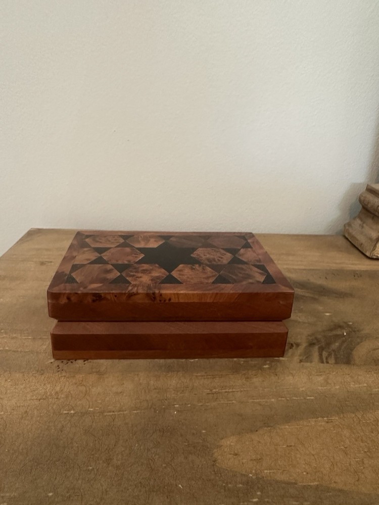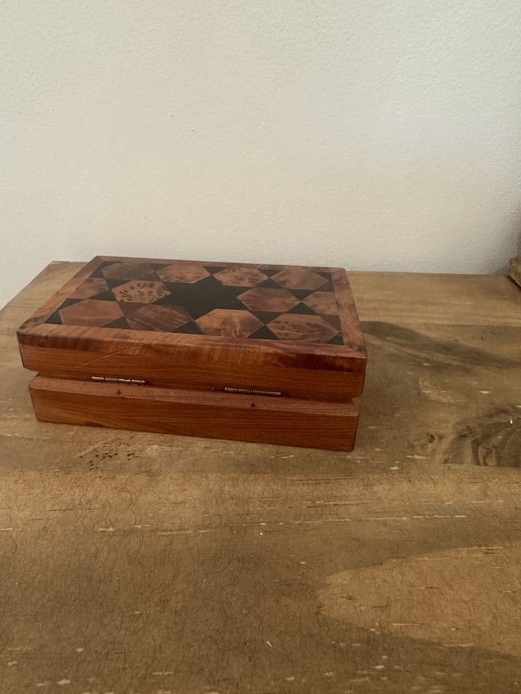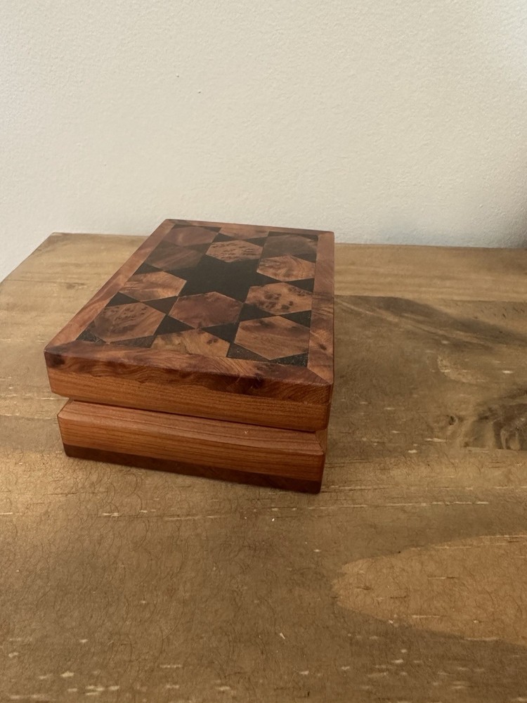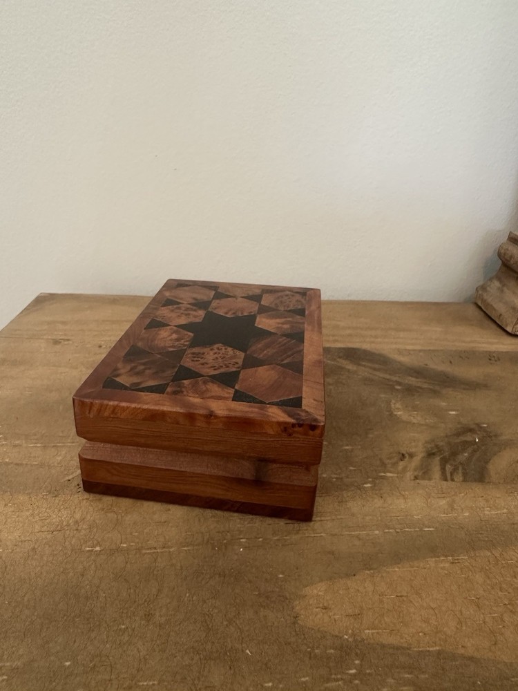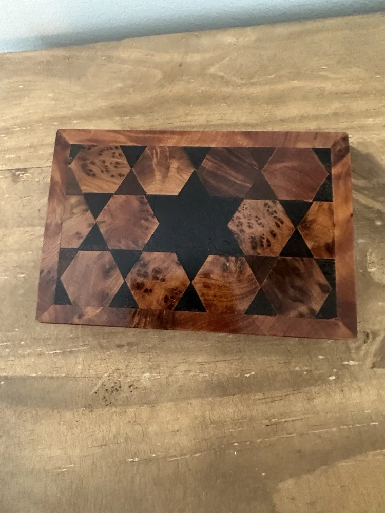 Handmade Geometric Thuya Wood Hinged Trinket Box 5L 1.5T