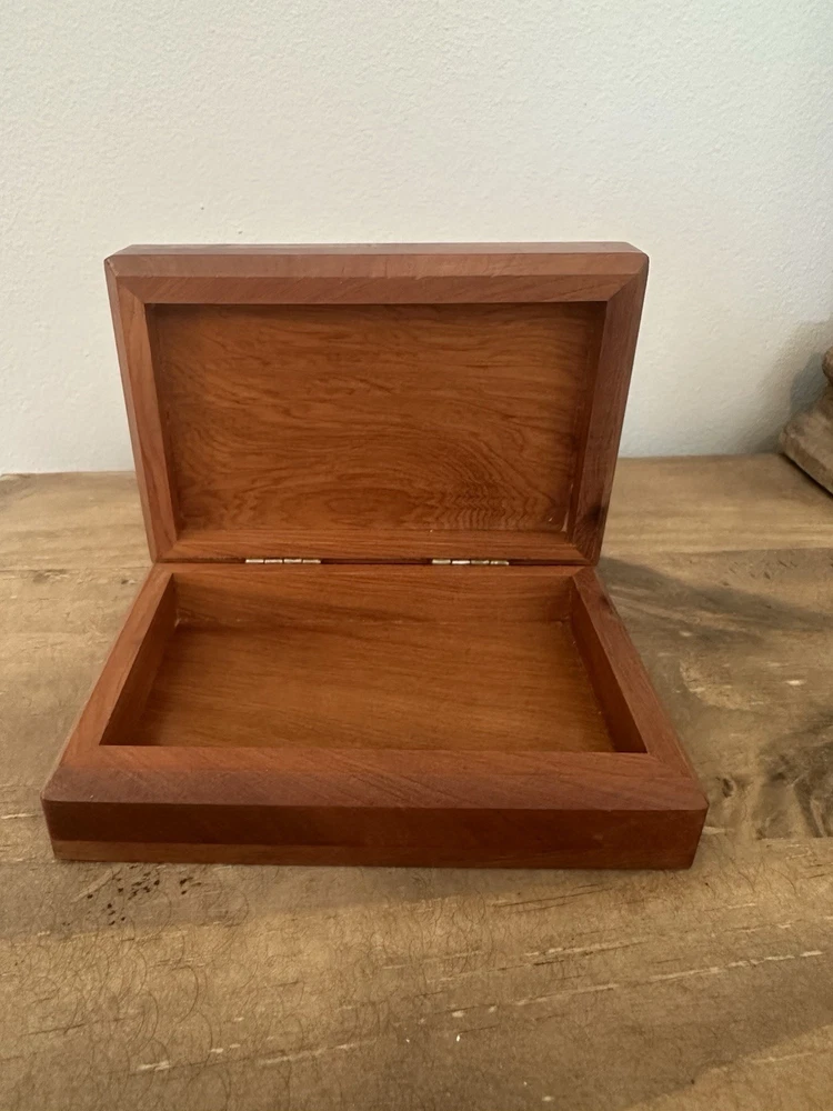 Pattern: Wood Grain Features: Carvings Shape: Rectangle Handmade: Yes Occasion: All Occasions Closure Type: hinged lid Collection: Keepsake Boxes Room: Any Room, Bedroom, Closet, Shop, Workshop Number in Pack: 1 Finish: Polished Character: N/ Country/Region of Manufacture: Morocco Type: Box Color: Brown Time Period Manufactured: 2020-Now Brand: Handmade Department: Adults Material: Wood