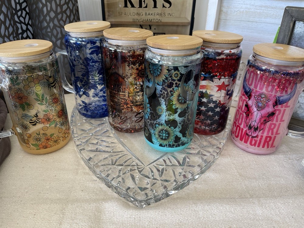 This Glass Snow Globe Tumbler is handmade in the USA, and also by a Veteran! Features multiple designs suitable for all occasions. The 16oz tumbler comes with a cup lid and straw, making it perfect for both teens, adults, and kids. The tumbler stands at 6 inches tall and is decorated with glitter for a modern and stylish look. With a variety of themes including animals, hobbies, and fantasy, this unique drinking glass is a perfect addition to your collection. Hand wash only to preserve the intricate designs and colors.