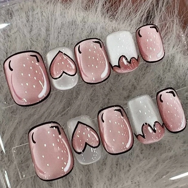 Effect: Shimmer Shape: Coffin Theme: Heart Brand: Unbranded Type: Press-On Nails Nail Size: Short Features: Full Cover, Glue Included, Self-Adhesive Suitable For: Nail Art Color: Pink Country/Region of Manufacture: China