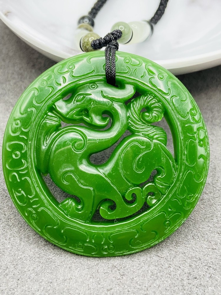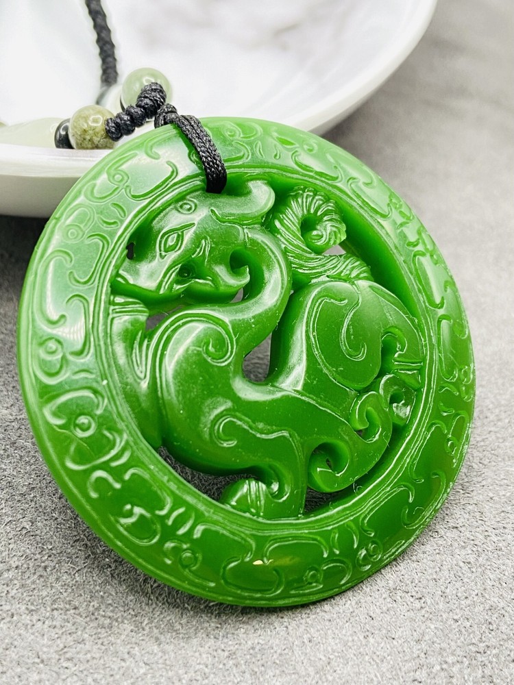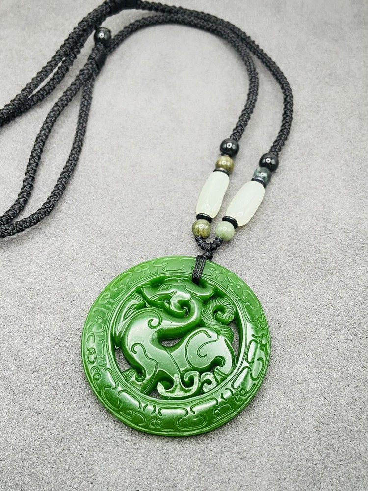 Main Stone: Jade Material: Jade, Stone Color: Green Brand: Unbranded Pendant Shape: Round UPC: Does not apply Style: Beaded, Chain, Charm, Pendant Pendant/Locket Type: Charm Features: Adjustable, Engraved, Reversible gtin13: Does not apply Country of Origin: China Main Stone Shape: Round Main Stone Color: Green Type: Necklace Necklace Length: 27 in