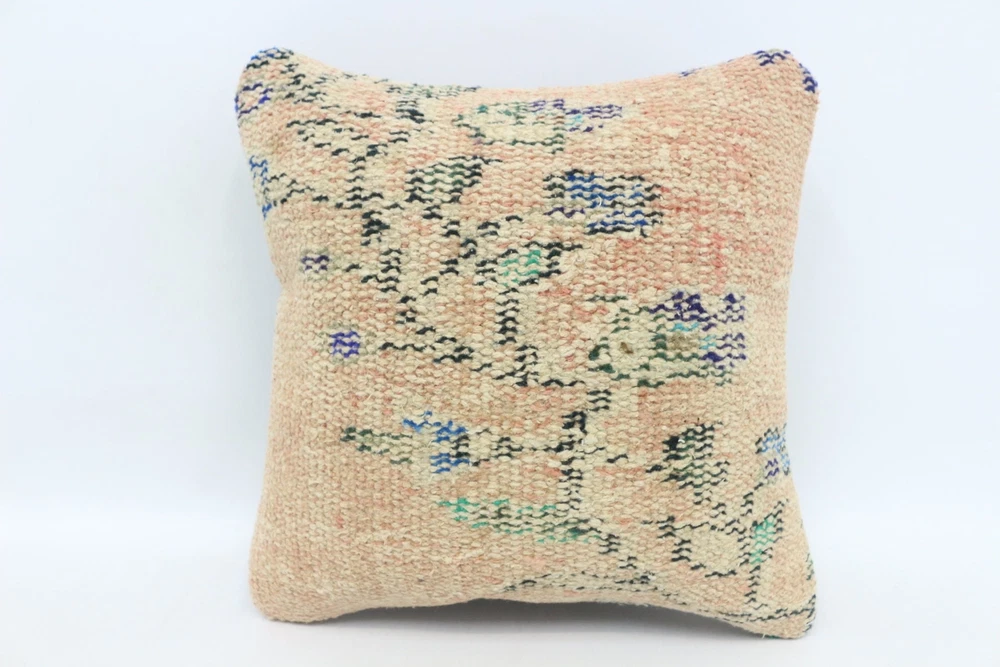 Handmade Kilim Cushion, 14"x14" Beige Pillow, Gift Pillow, Pillow Cover