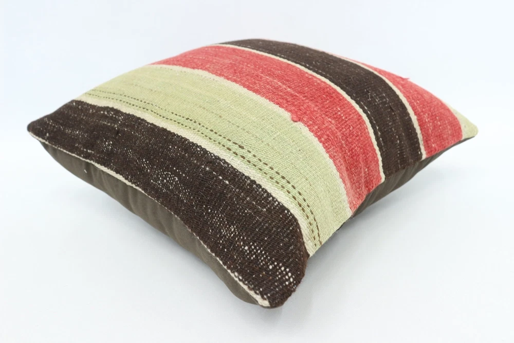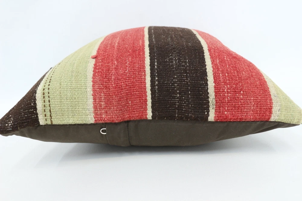 Kilim Pillow Details: All of my beautiful pillow covers or cushion cases are designed and made by me. I am making my throw pillow covers from handmade vintage rugs, Turkish rugs. Therefore, each of my vintage kilim pillowcase is one of kind. These cushions covers are piece of an art. The size of this pillow is 14 x 14 inches or 35 x 35 cm. The front side of this decorative pillow cover, cushion cover is wool on wool vintage kilim rug. The backside of this throw is high quality cotton fabric with a high quality zipper. This listing has 2 option for this handmade pillow. You can choose with insert or without insert. The listing photos is with insert in the pillowcase which is just for demonstration purpose. All of my vintage Turkish rugs have been professionally washed before I cut them as pillow case or cushion case so these kilim covers are 100 posent clean and ready to use. Due to the age and handmade nature of these vintage rugs, there might be imperfections and flaws that are not considered defects. This is a piece of a handmade vintage rug with minor signs of wear consistent with age and use that give it an antique look. You can see the condition of the rug pillow clearly in the detailed photos. I am going to ship your order of decorative pillow as soon as possible. I usually ship in the next day with DHL Express or FedEx which will deliver the kilim pillow, cushion cover just in 3-5 business days. It is my responsible until you receive pillow cover or pillow cover with insert at your door. If the pillow cover or insert get lost or damage during the shipping, I will ship the new kilim pillow cover or pillow insert for free as soon as possible. I take photos of my throw pillows indoor with professional camera which shows the real colors. The photos of these Turkish pillow covers are not altered. Keep in mind the colors of the rug vary slightly in different lights. Please contact to me for additional photos. I take the photos of my vintage rugs outside with daylight to show you the real and natural colors. My photos are not altered. Keep in mind the colors of the rug vary slightly in different lights. Please contact to me for additional photos. SATISFACTION GUARANTEED for your order in my shop. Your SATISFACTION is the most important to me. Please write me if you have any question or if you don't like anything from my pillow covers, cushion covers. If any reason, you are not happy from your Turkish pillow cover, I accept return without any hassle. Please read my shop policies for details. This cushion case or pillow cover can be used as decorative throw pillow, gift pillow, Christmas pillow case, bedding pillow, lumbar pillow, sofa pillow, bohemian pillow, boho pillow. You can find in any kind of Turkish kilim pillow cover in different design such as striped pillow, embroidered pillow, and geometric pillow.