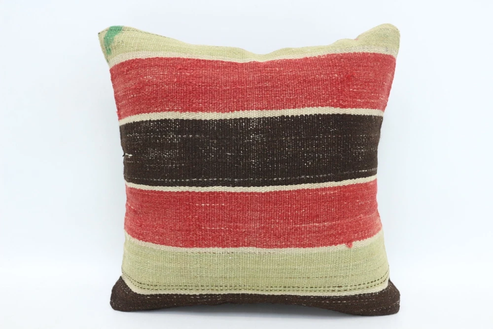 Handmade Kilim Cushion, Turkish Pillow, Boho Pillow, 14"x14" Red Pillow
