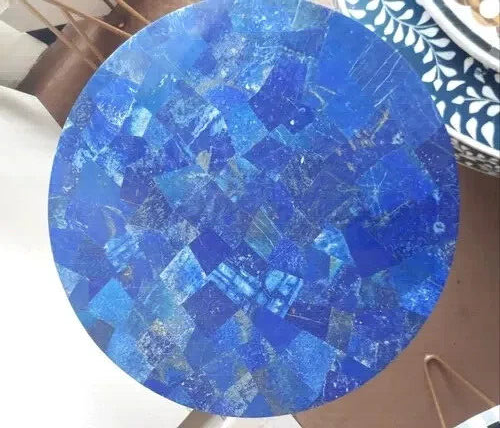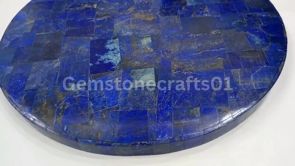 Product Information Size: 15x15 Inches Shape: Round Color: Blue Thickness: 10-20 mm About Product Introducing our exquisite lapis lazuli tables, crafted with the finest quality materials to bring a touch of luxury and elegance to any space. Each table is meticulously designed to showcase the natural beauty and unique patterns of lapis lazuli, making it a stunning statement piece for any room. Whether used as a side table, coffee table, or accent piece, our lapis lazuli tables are sure to elevate the aesthetic of your home or office with their timeless allure and sophistication. The table is expertly crafted with a sleek and modern design, making it a perfect statement piece for any contemporary space. The natural patterns and swirls of the Lapis Lazuli stone as a blue marble give each table a one-of-a-kind look that is both elegant and sophisticated. Whether used as a coffee table, side table, or accent piece, this lapis lazuli table is sure to become the focal point of any room. Its beauty and craftsmanship make it a must-have for those who appreciate fine quality and exquisite design. Kindly Note: We welcome your personalization request (custom request) as per your size, shape and design but you have to pay spare money. Buyers are liable for any customs and import taxes that may apply. I'm not liable for delays due to customs. Marble inlay handicrafts & other natural marble products are handmade products, colors of semiprecious stones & marble used may slightly vary from the image shown. This is only table, any type of leg is not included. If you want it then please message us. Equipment & accessories are used only for photography purpose which do not ship with the product. We are unable to ship to a PO Box address & for Russia, Brazil country we need firm entity name or business name parcel will not go to individuals name. If you have any query please feel free to contact us. Shipping & Packaging For shipping we use DHL & FedEx Export packing sealed wooden, crate with foam plastic straps outside. If there is any Local Tax, Custom Duties or Vat at the destination, it will be paid by the buyer Thanks for Visiting.... Have a Nice Day...