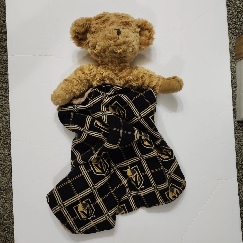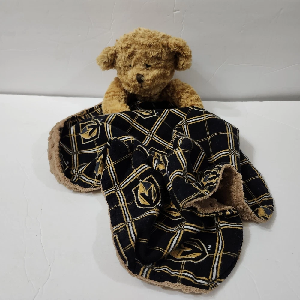 Handmade Las Vegas Golden Knights Plaid Quilted Bear Lovey VGK Hockey