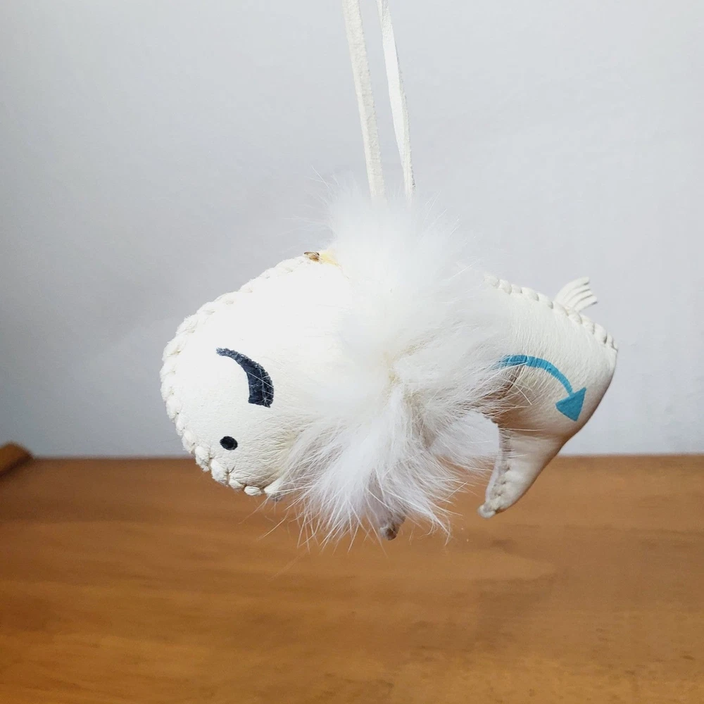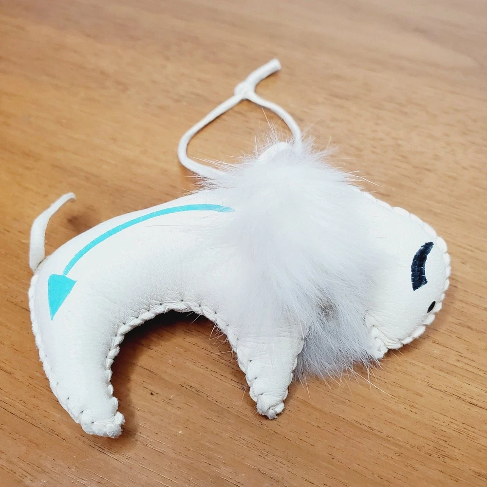 Handmade Leather Fur Bison Hanging Tree Ornament Native Art White Buffalo