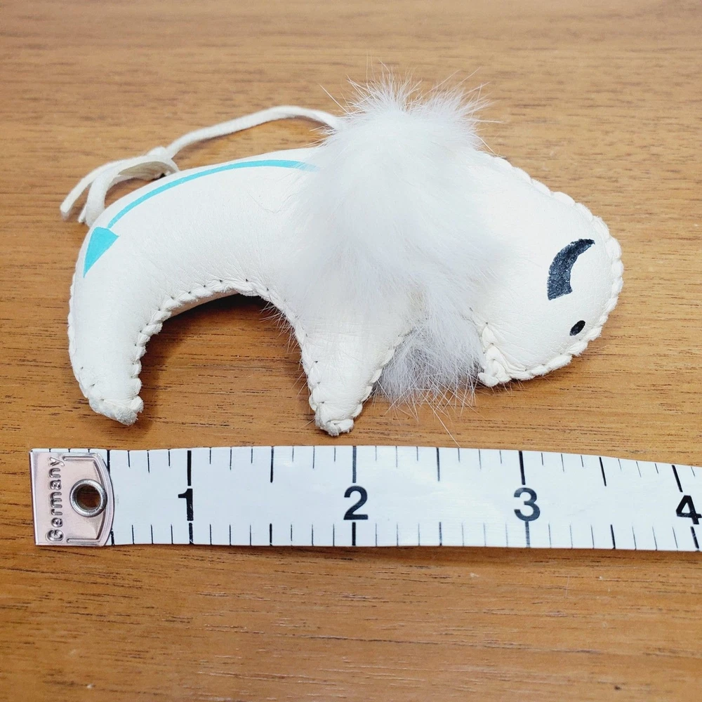 Handmade Leather Fur Bison Hanging Tree Ornament Native Art White Buffalo in good gently used condition there is a glue mark on the back of his head (SEE PICS AS PART OF MY DESCRIPTION) *unique animal ornaments *white bull decorations *christmas tree ornament *native american artwork * leather arts