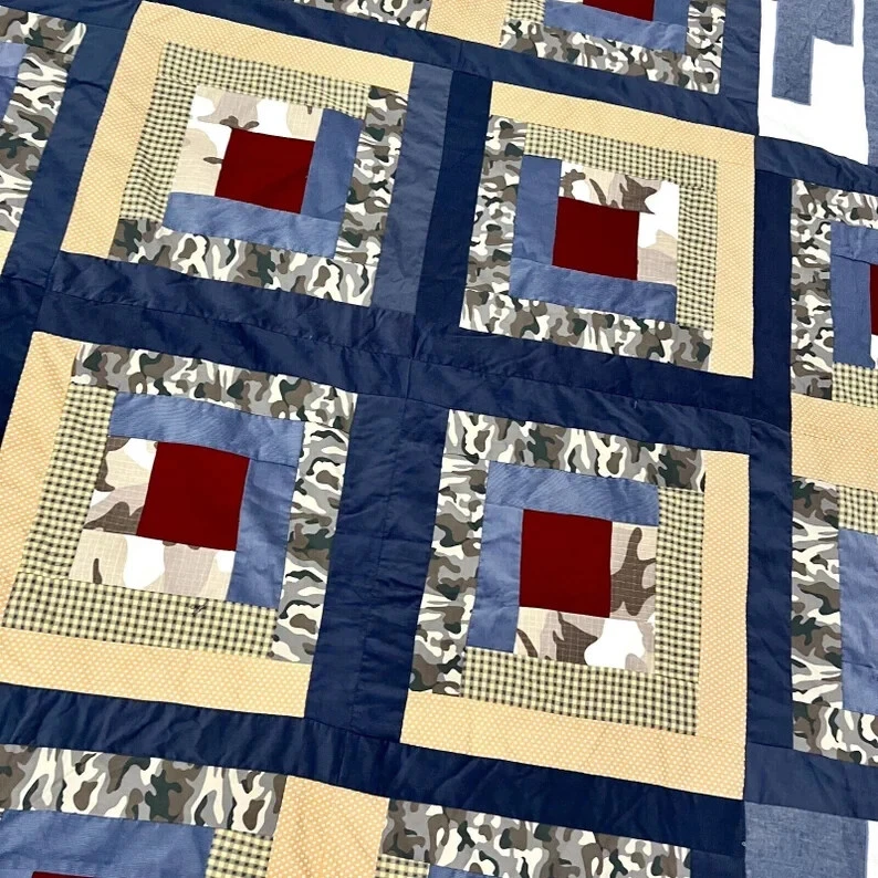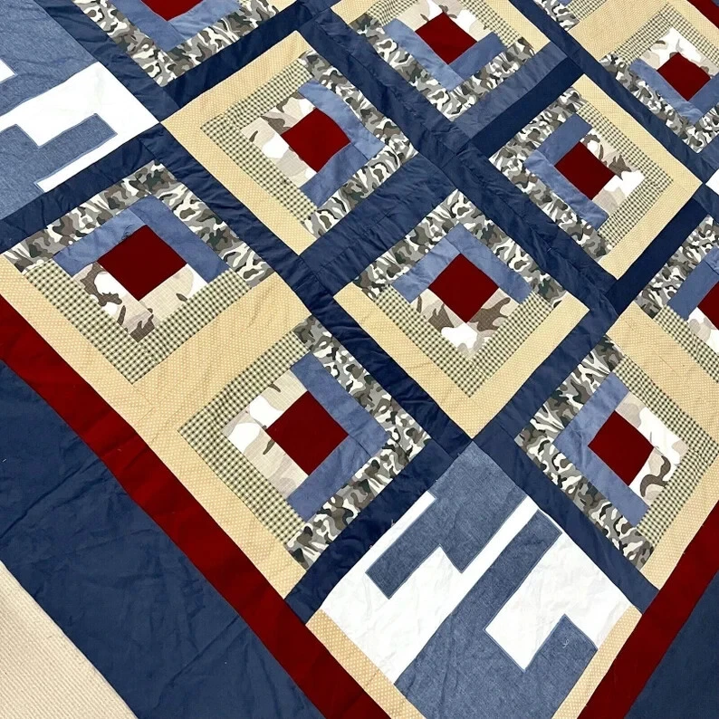 Handmade Log Cabin Star Patchwork Queen size Quilt top/topper Sewing/Quilt craft