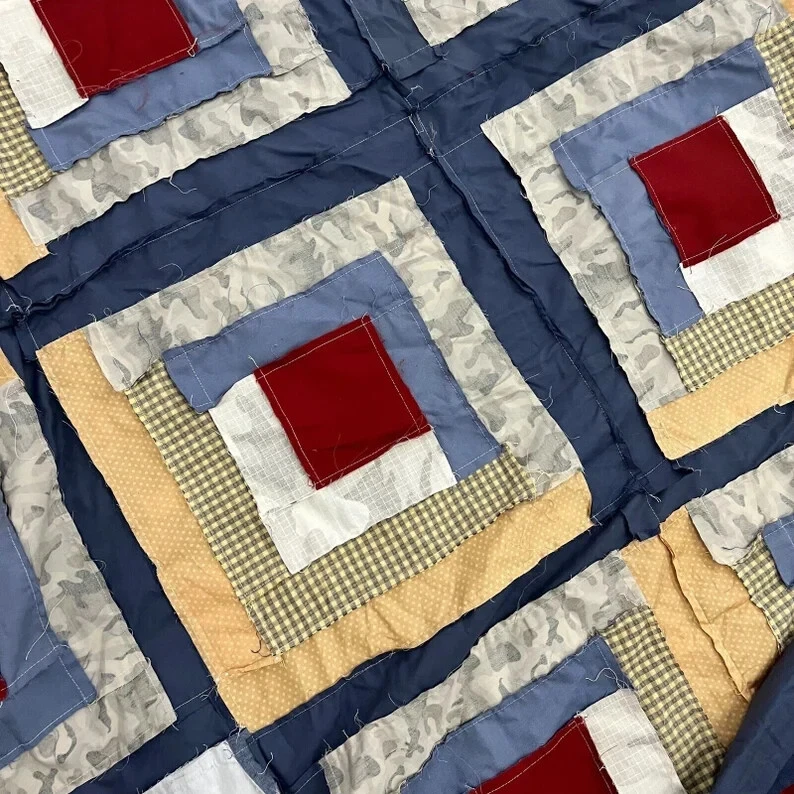 Handmade Log Cabin Star Patchwork Queen size Quilt top/topper Sewing/Quilt craft This is not complete quilt , you need add batting and backing and do the quilting work. You can finish it as a quilt, as a shirt, as a skirt, anything within your creativity. This fun quilt topper has a variety of colors to go with. So classic. No Stains! Never been used. No prewash Measure: Around 86x86”+-3" 100 % cotton fabrics