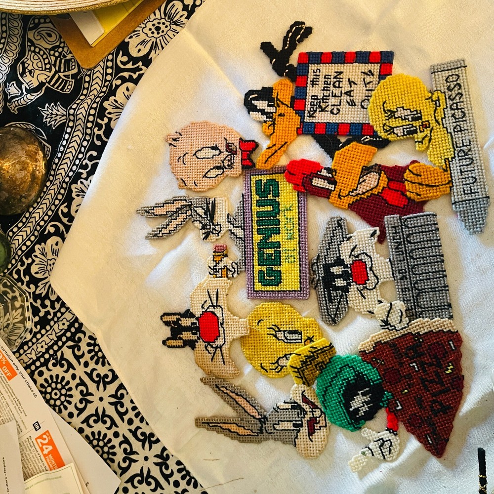 10 Magnets. Fun handmade. Largest measures 5.5" x 6". Smallest measures 3" x 3". Many are dirty and could use a cleaning. Fun wording. Please use pictures as an inclusive part of the description. Colors can vary on monitors. Sold as shown. Happy to combine shipping with other items currently listed. We are celebrating 25 years on eBay and are happy to offer many varied items for collectors and consumers alike. New items listed daily.