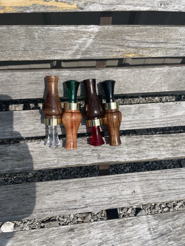 Only the red and dark brown one the other calls are available if you would like one of those instead let me know.Handmade help a kid out and buy please single reed duck call They Sound great just letting you know you’ll be the only one with a handmade call 1 of 1 to your friends and will sound the best out of all of them if your still reading this don’t keep thinking about it just buy it already