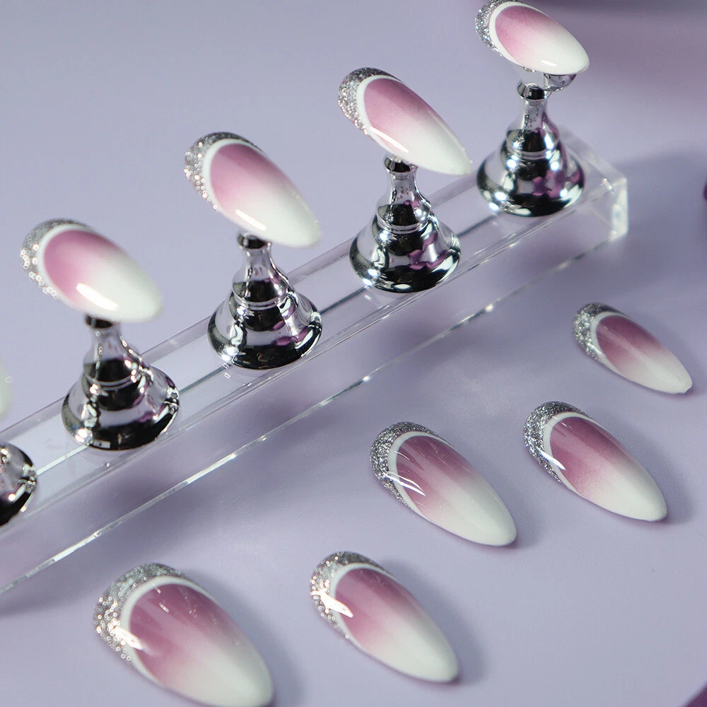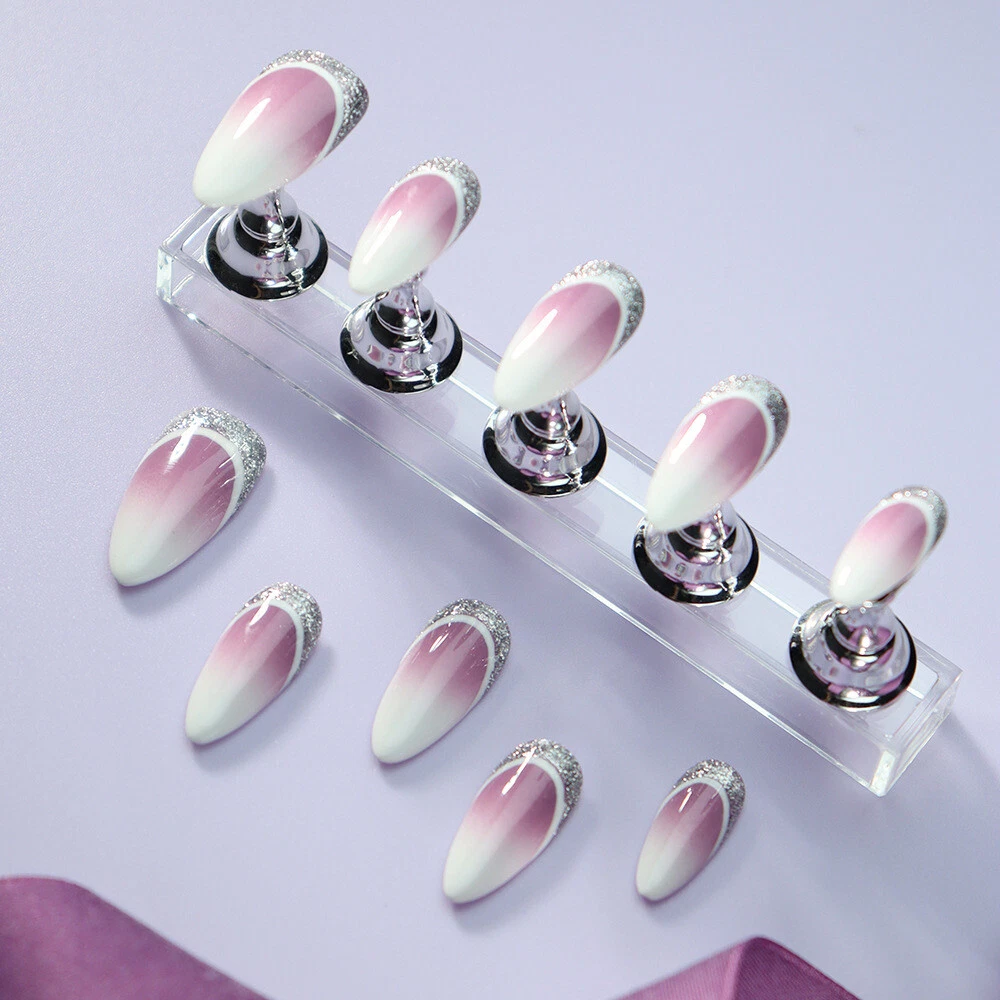 Handmade Minimalist Sequins Ombre False Nail Medium Almond Press on Nail