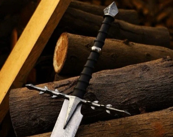 Crafted with meticulous attention to detail, the Nazgul RingWraith's Replica Sword is a stunning piece that will captivate the attention of any enthusiast. The full tang construction ensures durability and balance, while the cord-wrapped handle provides a comfortable grip. The sword's silver hue and stainless steel blade material reflect a fusion of style and functionality, making it an exceptional addition to any collection or cosplay ensemble. Embrace the fantasy of the Lord of the Rings with this authentic Mughalqa-brand replica, which is a tribute to the iconic weapon wielded by the fearsome Ringwraiths. This piece is a must-have for collectors and fans, made ambidextrous for versatility and featuring a sleek, original design that's sure to stand out at any event, including the New York Comic Con. Handcrafted Fantasy Sword Replica - Groomsmen Gift, Boyfriend Gift, Husband Gift Step into the mystical world of fantasy with our meticulously handcrafted replica sword. This piece is inspired by legendary tales of powerful beings and ancient battles, making it a striking addition to any collection. Features: Authentic Design: Modeled after iconic fantasy swords, this replica features a battle-worn metal crossguard and pommel. Premium Materials: Crafted with a genuine leather-wrapped grip and a robust rat-tail tang construction. Impressive Dimensions: Total Length: 41 inches Blade Length: 29 inches, acid-etched and tempered 420 J2 stainless steel Exclusive Display: Comes with a 10"x 13 7/8"x 3/4" wooden plaque, ideal for wall hanging. Perfect For: Groomsmen Gifts Boyfriend Gifts Husband Gifts Fantasy Enthusiasts Bring the allure of ancient legends into your home with this detailed and striking replica sword. Whether as a gift or a collectible, it's sure to captivate and impress. Note: All our products are designed as decorative items and are not intended for use as weapons