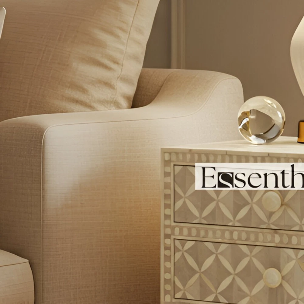 Modern Geometry Meets Artisan Craft This elegant Cream Bone Inlay Cabinet with three drawers features a refined geometric pattern that blends traditional craftsmanship with modern design. Each motif is hand-inlaid using ethically sourced camel bone set against a soft off-white resin base—creating a subtle, dimensional texture perfect for neutral, luxe, or minimalist interiors. Designed and handcrafted by artisans in Rajasthan, India, this piece is both decorative and functional. The three drawers offer practical storage for living rooms, bedrooms, or entryways—ideal for stowing essentials without sacrificing style. Its clean silhouette, delicate tones, and handcrafted appeal make this cabinet a versatile accent piece for any room in your home.