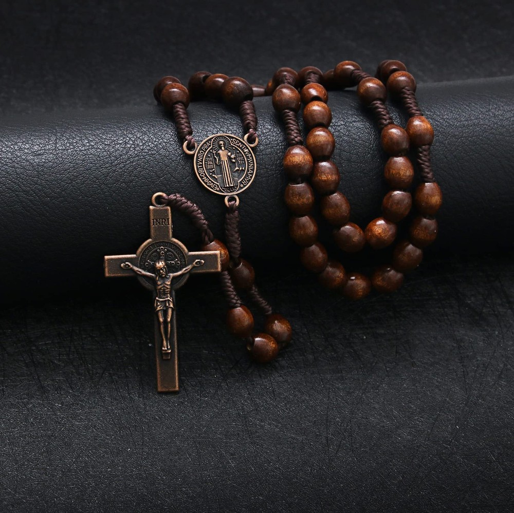 Handmade Wooden, Rosary Beads Necklace From Bethlehem Olive wood DESIGN: Wooden St Benedict Rosary Beads with St Benedict medal and Jesus Crucifix. The beads are made from the finest hard wood (Ocotea Porosa) which gives a delightful hint of nutmeg and cinnamon as well as making the beads sturdy and long lasting SIZE: Decades Length: 24" - Drop Length: 4" - Crucifix at end of rosary: 2" x 1 1/2 STYLE: Though this item is made for use during a variety of Christian prayer (most notably by Catholics) due to it's size it can also be worn around the neck as a necklace; They can also be used in a car by wrapping them around the mirror GIFT: A perfect gift with elegant rosary pouch packaging; Ideal for Birthdays, Christmas, Holy Communion, Christenings, Valentines Day, Mothers day, Anniversaries and weddings Occasion: These rosaries are suitable for men or women; Suitable for prayer in many Christian denominations including Catholic prayers Shipping We offer FREE shipping on all orders! We ship within Three business days of payment, usually sooner. We use a selection of shipping services such as UPS, FedEx, USPS etc. We only ship to the lower 48 states, no APO/FPO addresses or PO Boxes allowed. Local pickups and combined shipping options are not provided at this time. Return You can return a product for up to 30 days from the date you purchased it. Any product you return must be in the same condition you received it and in the original packaging. Please keep the receipt. Payment We accept payment by any of the following methods: PayPal Please pay as soon as possible after winning an auction, as that will allow us to post your item to you sooner! Feedback Customer satisfaction is very important to us. If you have any problem with your order, please contact us and we will do our best to make you satisfied. Contact Us If you have any queries, please contact us via ebay. We usually respond within 24 hours on weekdays. Please visit our eBay store to check out other items for sale! Thank you for shopping at our store.