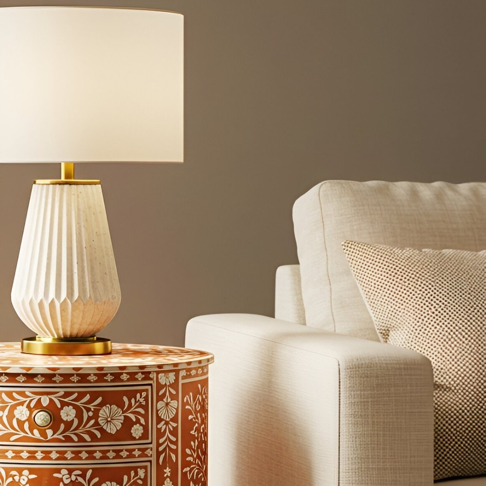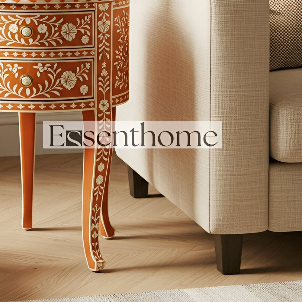 Elevate your décor with this stunning Handmade Bone Inlay End Table , a true work of art that brings timeless elegance to any room. Crafted in rich red with intricate ivory floral inlay, this round table showcases traditional Indian craftsmanship at its finest. The table features a compact round shape supported by elegantly curved legs , adding a graceful and classic look to your space. With two spacious drawers , it offers both style and functionality—perfect for keeping essentials neatly tucked away in your living room, bedroom, or hallway. Each piece is handmade using ethically sourced bone and resin, making every table one-of-a-kind. Whether used as a side table , nightstand , or entryway accent , this table adds a refined boho-luxury feel to your interiors.