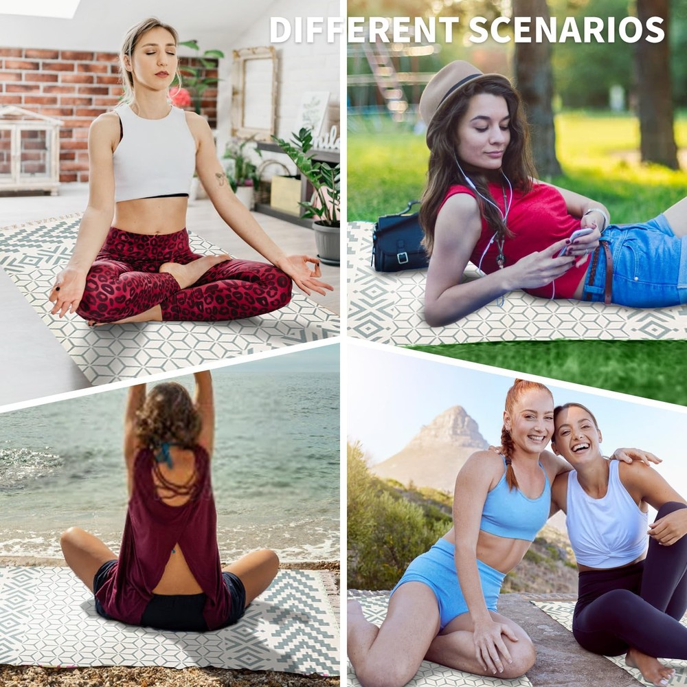 ABSORBENT & SANDPROOF & QUICK DRY: Made from eco-friendly premium cotton, this mat is super soft to the touch. the cotton mat stay sturdy on any hard surface. The felt option also makes the mat slightly thicker and heavier which is good for the practice. But it's lightweight enough to take with you on the go. ABSORBENT HOT YOGA RUG : Great for sweaty hands and feet. Made with certified organic cotton to ensure a breathable, moisture-wicking, highly absorbent yoga rug that won’t smell sweat nor chemicals as synthetic ones do. MADE WELL: The Yoga Mats are made using Superior Cotton weave and recyclable materials to give a case of the mats being eco-friendly. With the exceptional usage of materials, these Workout rugs provide an excellent grip to help them stay in place and not slip while working out. Comes in the size of 2’ x 6’ Feet to provide supreme convenience to help you perform any movement with confidence. The subtly textured mats prevent your hands and legs from slipping out. PORTABLE AND TRAVEL-FRIENDLY : Our travel-friendly yoga mat is lightweight, easy to fold or roll to a portable size which makes it convenient to carry around when traveling and taking it to yoga classes or even to the beach. It measures 74 inches X 24 Inches. WORKS WELL FOR MOST STYLES OF YOGA: Hatha, Vinyasa, Iyengar, Ashtanga, Bikram, Hot Yoga, Kundalini, Yin, Prenatal, Restorative, Anusara and Vini-yoga, and normal fitness routine.