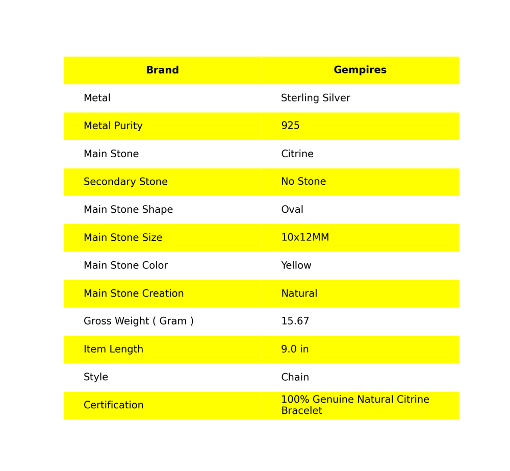 Welcome To Our Shop Gempires ------------------------------------------- Ultimate symbol of elegance and beauty this Citrine 925 Sterling Silver Bracelet will add a majestic charm in your overall look. Its resplendent design will definitely grab the attention of everyone around you. Oval Cut Citrine Stone Bezel Chain Valentine Gift Handmade Bracelet 925 Silver Check My Other Bracelet Listings : Click Here SKU:- RB-6-3 Metal:- Sterling Silver Metal Purity:- 925 Gemstone:- Citrine Gemstone Color:- Yellow Gemstone Shape :- Oval Gemstone Creation :- Natural Stone Setting :- Bezel Bracelet Length:- 9 Inches Bracelet Width:- Inches ___________________________________________________________________ Shipping Handling - Free Standard Shipping all over the world Handling Time - 2 to 5 BUSINESS Days Delivery Time - 7 to 20 Days ( Various on destination ) _________________________________________________________________ Returns - 1.We provide a 100% Money Back Guarantee, excluding shipping costs, within 30 days from the date of item receipt. 2.The item must not be altered or damaged in any way shape or form. 3.Upon receipt of the aforementioned items, your payment will be promptly refunded. 4.Please be so kind as to contact us via email in order to acquire comprehensive return instructions before proceeding with the return of the merchandise. 5.Kindly be advised to allocate a maximum period of 1 business day for the processing of all returns, in order for the appropriate credit to be applied. 6.Sizing does not affect the return policy. _________________________________________________________________ FAQ's - Q.1 ARE THE ITEMS YOU ARE SELLING BRAND NEW? We exclusively offer brand-new products, refraining from the sale of pre-owned jewelry. Our entire jewelry collection is composed of 100% natural, conflict-free pieces. We do not engage in the trade of imitation or lab-grown gemstones and diamonds. Q.2 WHAT ARE YOUR BUSINESS HOURS? we operate 24x7 as we have a dedicated team who works in different shifts to deliver the services to our valuable customers. ________________________________________________________________ Gempires is committed to delivering customers an unparalleled experience through the provision of exquisite handmade jewelry, meticulously crafted to uphold the most exacting standards of quality. Our operations encompass dual roles as both discerning connoisseurs and skilled artisans within the realm of jewelry making. We proudly hold an extensive proficiency in the fine art of enhancing gemstones, allowing us to harmonize them seamlessly with diverse aesthetic inclinations. We are delighted to extend to you the privilege of curating your very own jewelry collection. This collection will be graced by the presence of genuine and splendid natural gemstones, each possessing an innate authenticity and beauty that is truly unparalleled. **** STAY BLESSED ALWAYS*****