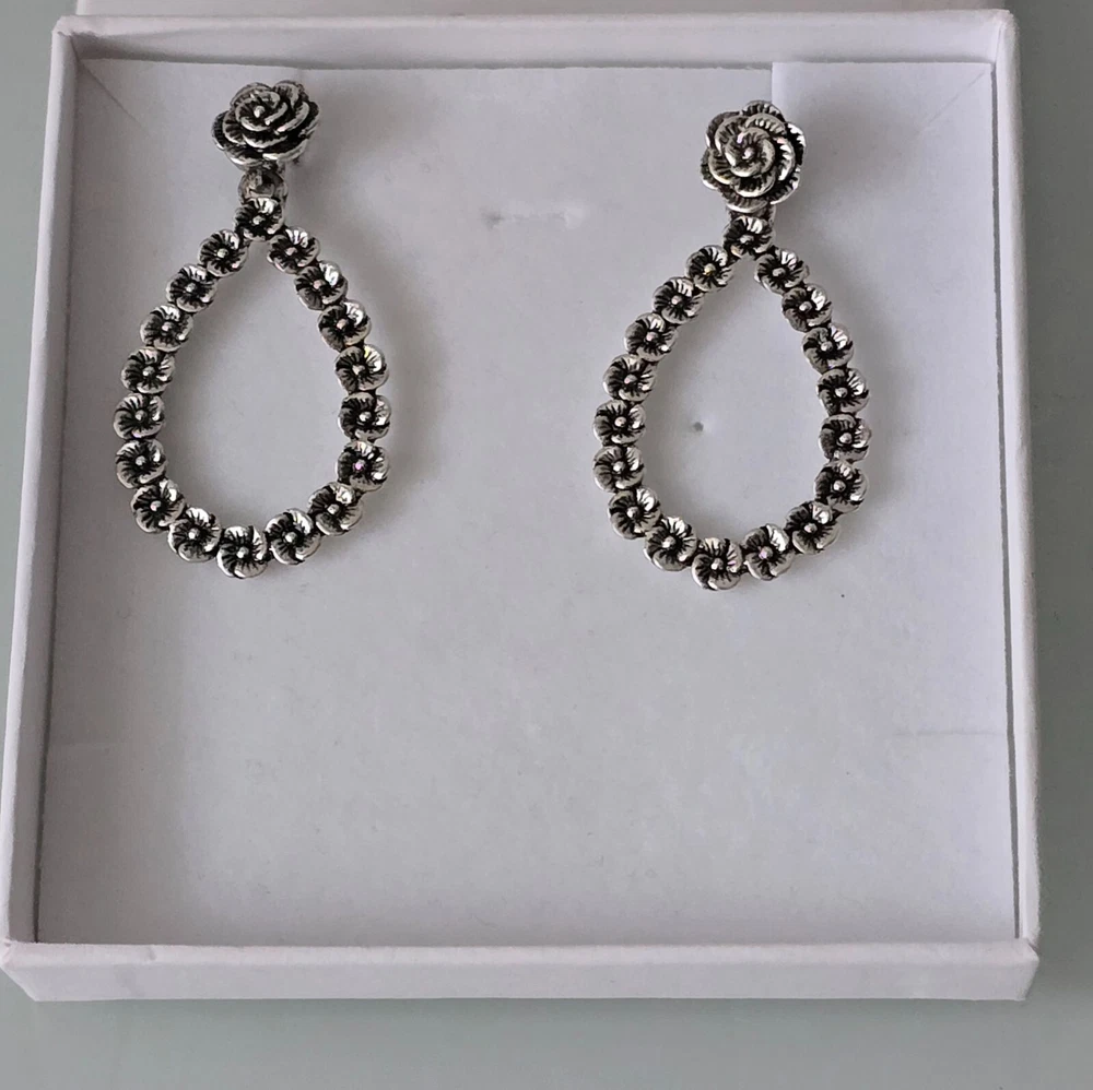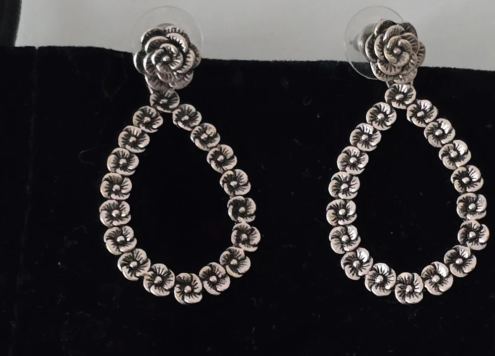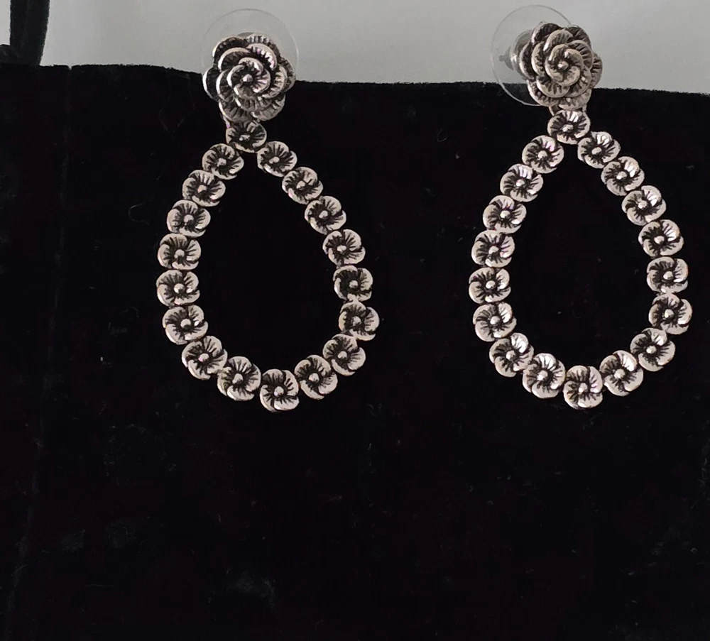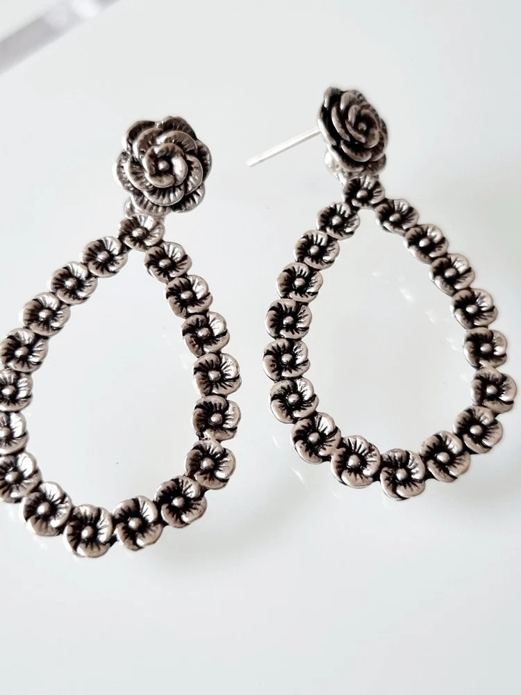 Vintage Handmade Oval Shape Sterling Silver Rose Flower Victorian Drop Earring These rare unique piece of earring is crafted from sterling silver and feature an ornate floral dangle. It has it's elegance and unique feel to it. Ideal for the perfect Lady. Suitable for all Occasion's.