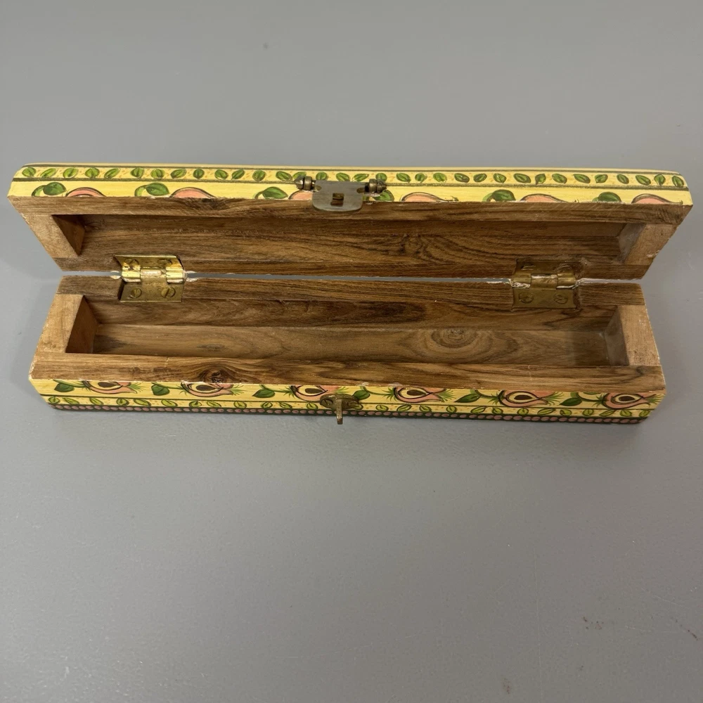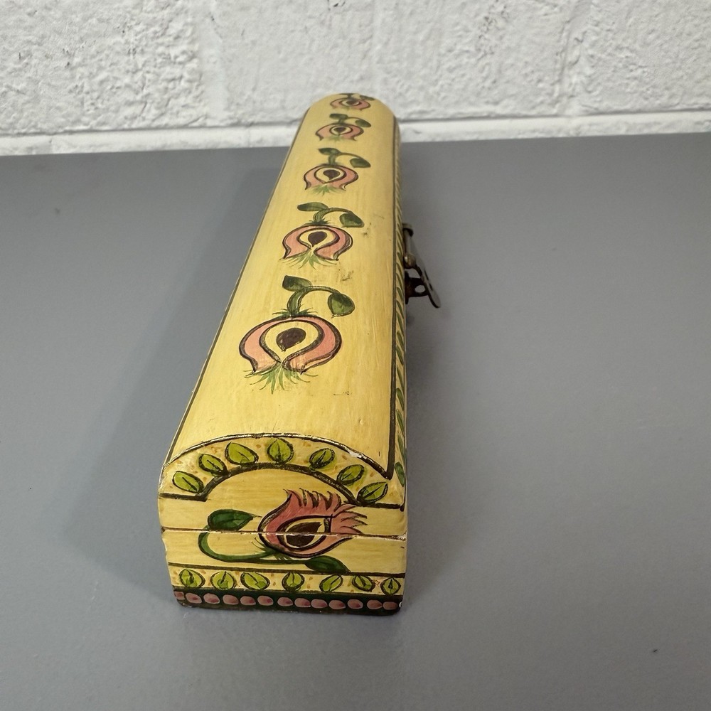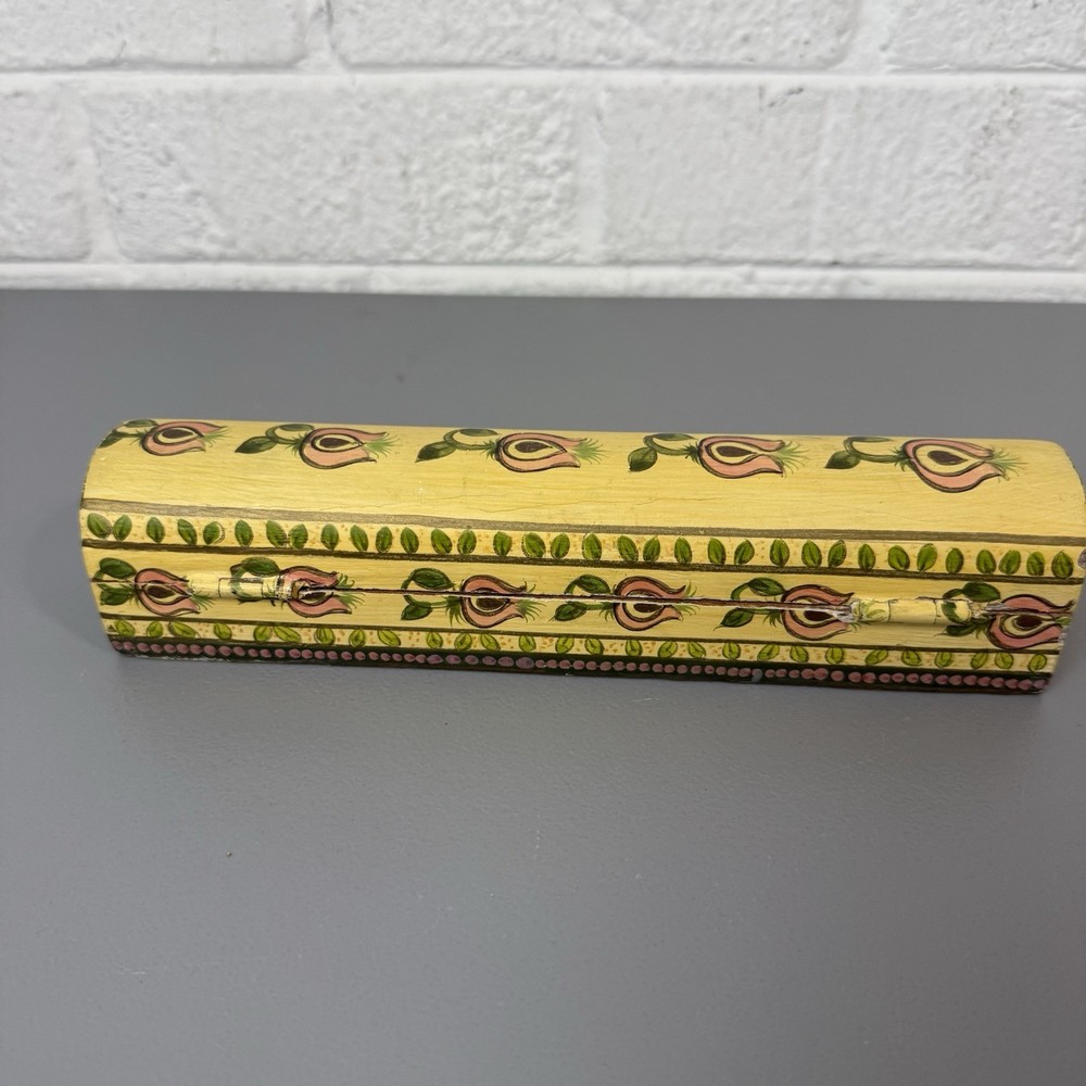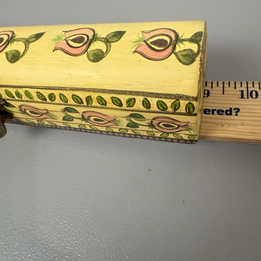 Pretty handpainted trinket box, clean interior. 9 x 2 x 2
