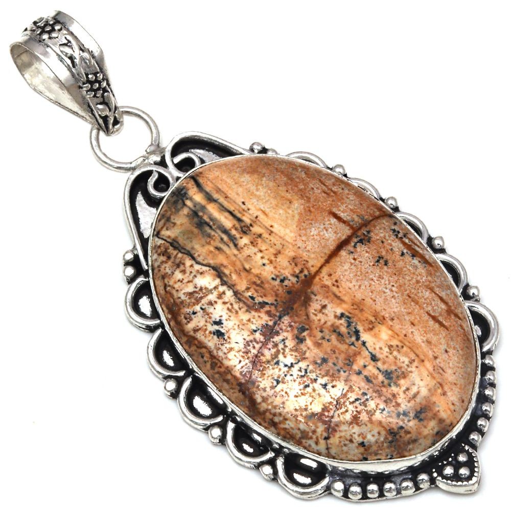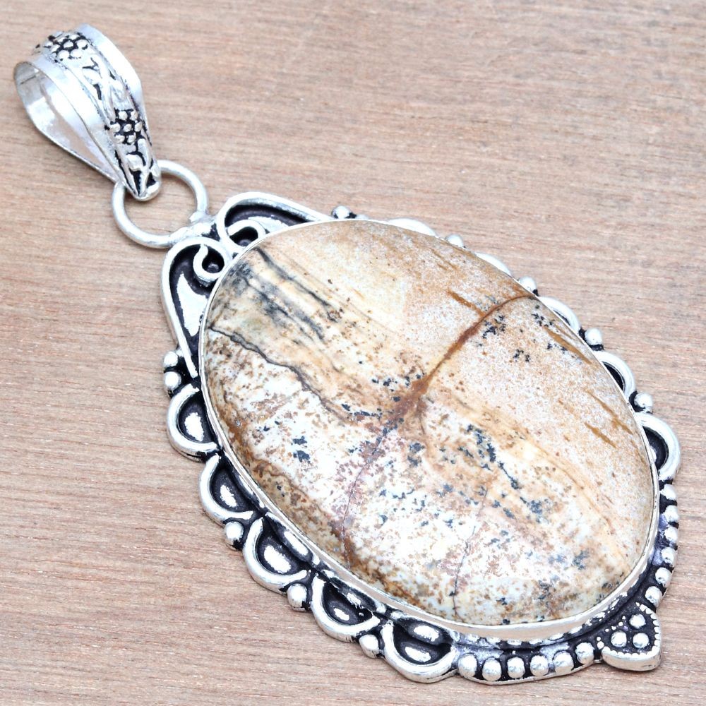 This stunning handmade pendant features a gorgeous picture jasper gemstone set in elegant 925 silver. The 2.5" piece has a natural, earthy charm, perfect for gifting or adding a unique touch to any outfit. The craftsmanship is excellent, with a solid, high-quality feel. A beautiful, meaningful piece that stands out—love the organic stone patterns and polished silver details!